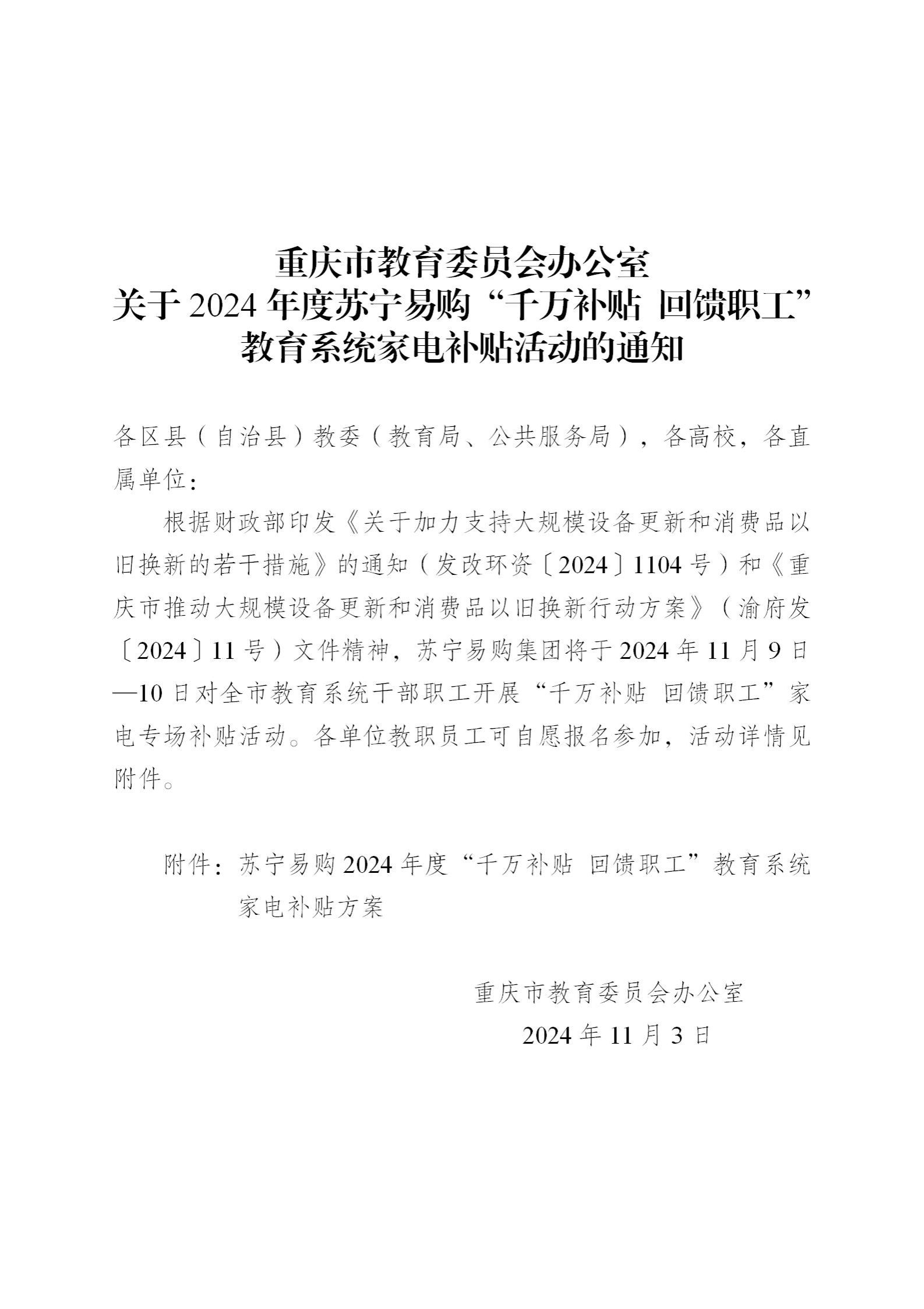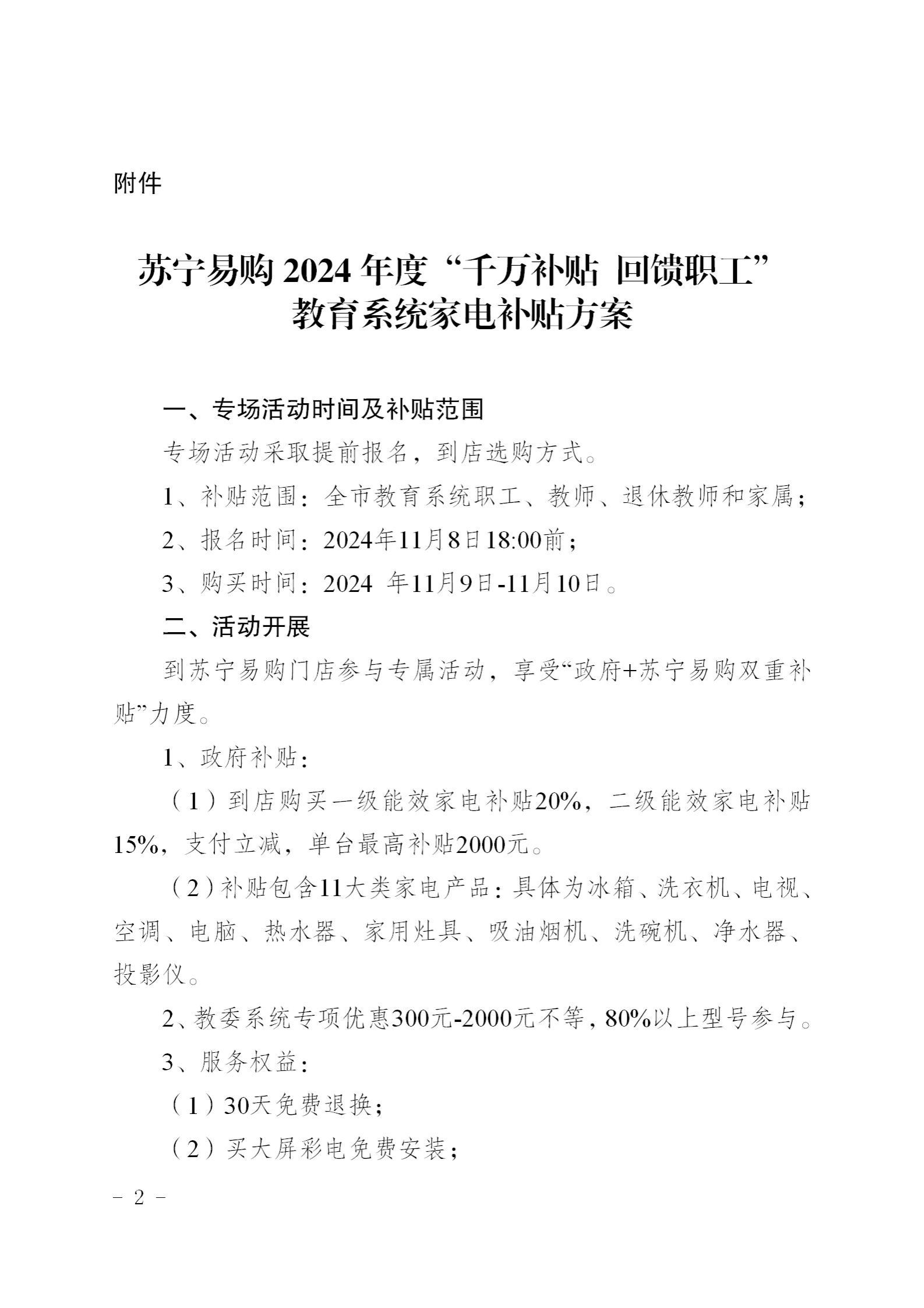 关于2024年度苏宁易购“千万补贴 回馈职工”教育系统家电补贴活动的通知