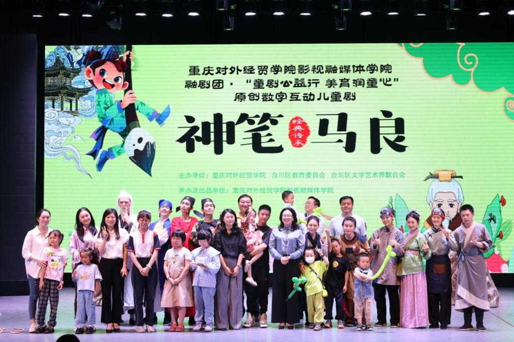 在“六一”儿童节到来之际,影视融媒体学院工会时刻把培养和关心教育儿童作为己任,特在合川A校区小剧场举行了“童剧公益行,美育润童心”原创数字互动儿童剧《神笔马良》展演活动。活动由重庆对外经贸学院、合川区教育委员会、合川区文学艺术界联合会主办,重庆对外经贸学院影视融媒体学院承办及出品。来自合川区委机关、新华小学、濮湖小学、新华幼儿园等单位的400名观众观看了本次演出。