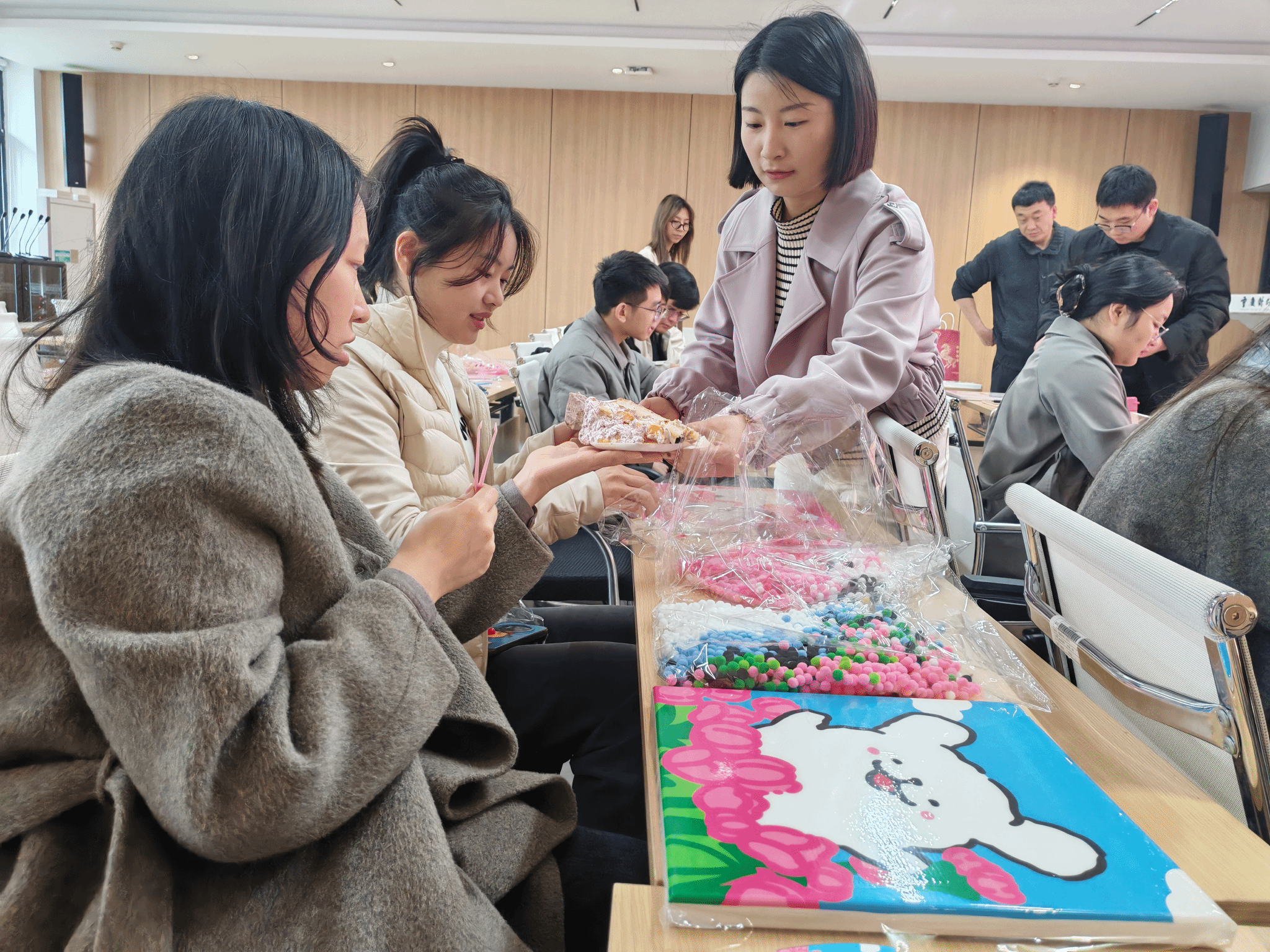 本次生日会的核心环节为创意毛球画手工制作。学院工会提前准备了彩色毛球、粘胶、画框、镊子等丰富材料,老师们兴致盎然、踊跃参与。创作过程中,老师们相互交流、互帮互助,分享技巧与灵感。随后,一幅幅色彩鲜艳、创意十足的毛球画陆续完成,每位老师都收获了独属于自己的生日手作,归属感与幸福感显著提升。