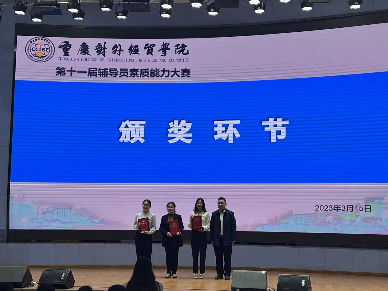 (重庆对外经贸学院校团委书记史丽涛与二等奖获得者)