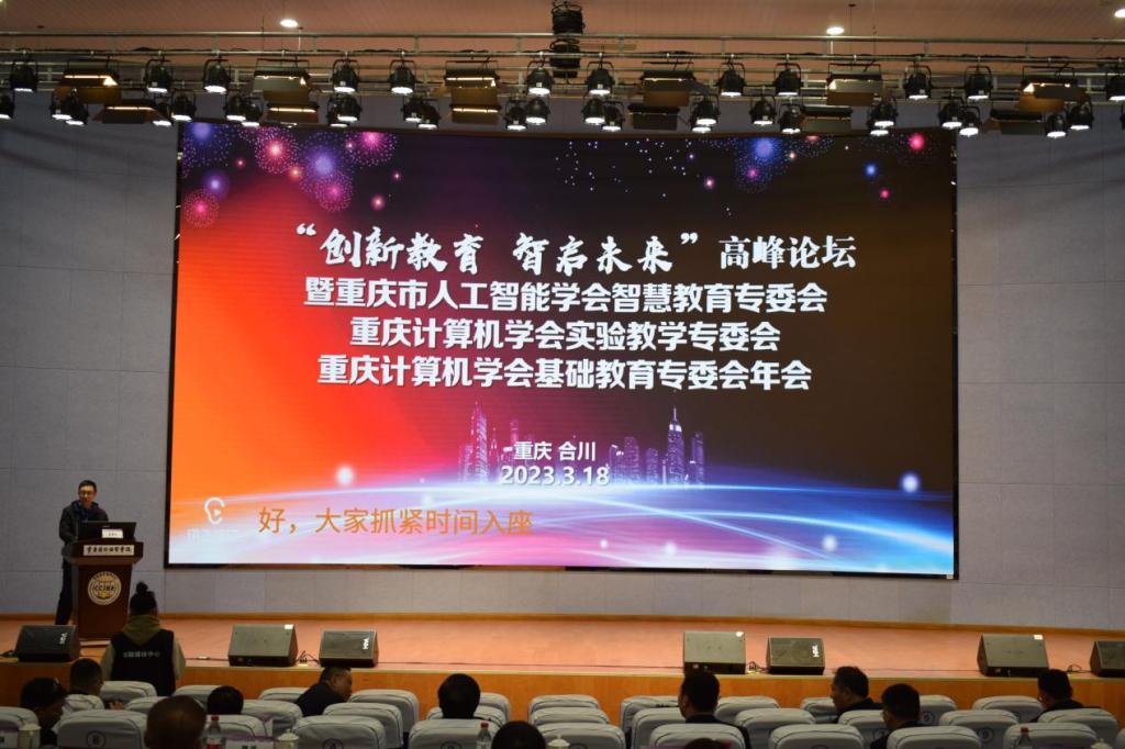 3月18日,重庆市“创新教育 智启未来”高峰论坛暨重庆市人工智能学会智慧教育专委会、重庆计算机学会实验教学专委会、重庆计算机学会基础教育专委会年会在学校合川A校区9101学术报告厅召开。