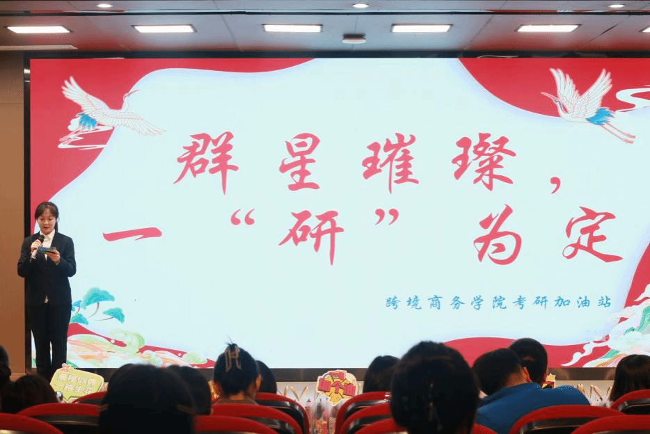 12月14日下午2:30,跨境商务学院在B1115教室举办考研慰问活动。院长赵逖、党总支书记任伟、副院长李艳、组织员兼办公室主任刘坤奇、团总支书记兼学生工作办公室主任蒋思维、学生会指导老师彭瑞以及学院老师出席本次活动。他们为全体考研学子送上祝福,也为考研学子们送上了特别准备的定制糖果、定制钥匙、零食礼包、手写祝福卡片、保暖物资、励志标语边角夹、金榜题名中性笔以及励志系列便利贴等慰问品,鼓励考研学子把握当下,沉着应考,摆脱焦虑,保持良好心态和作息,注意身体健康,关注考试注意事项,持之以恒,勇往直前,不负青春,一战成研!