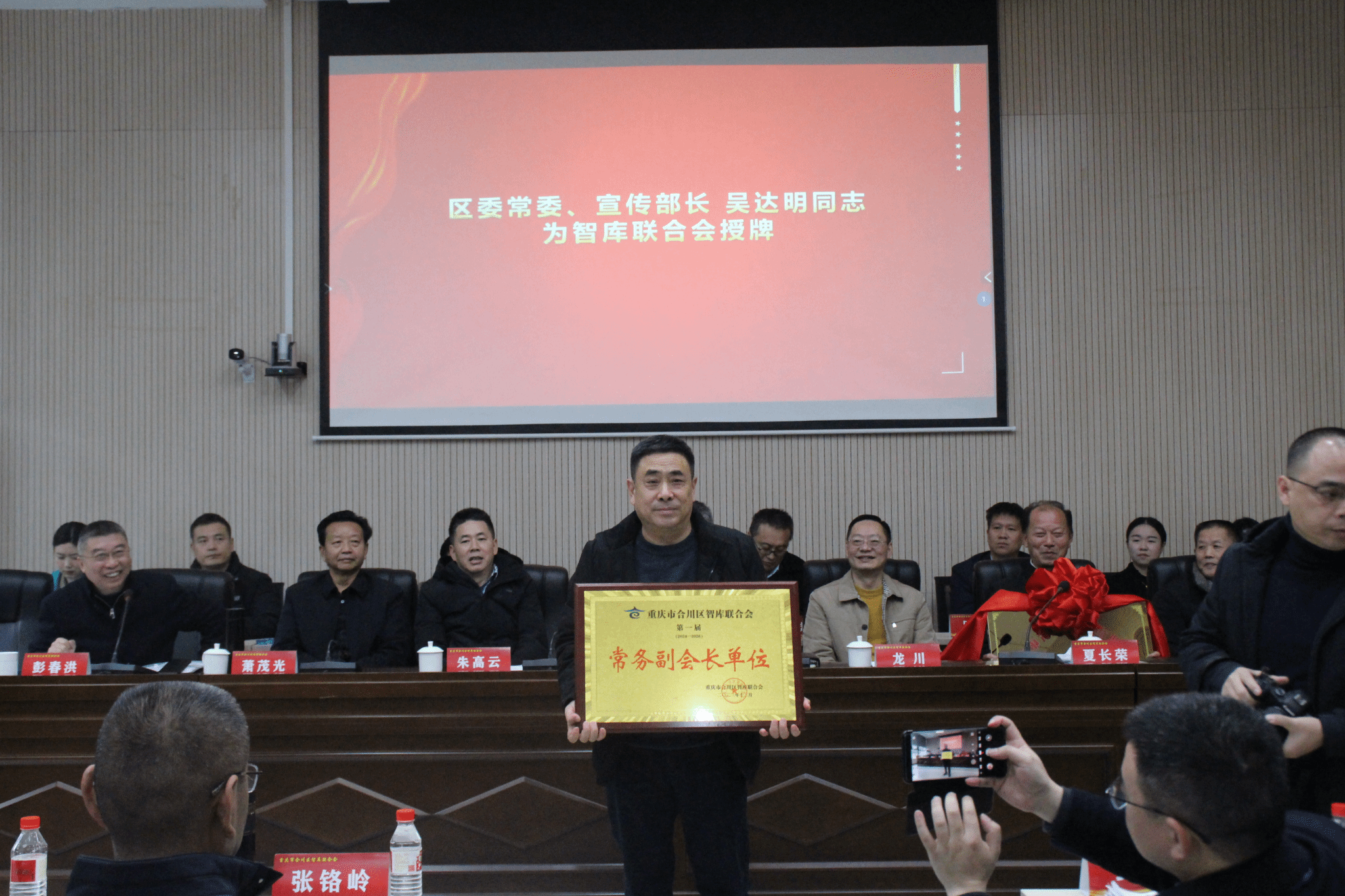 合川区委常委、区委宣传部长吴达明,市社科联党组成员、副主席龙川,市社科院领党组成员、副院长朱高云同志,区社科联党支部书记、主席彭春洪在重庆市合川区智库联合会成立大会上致辞。