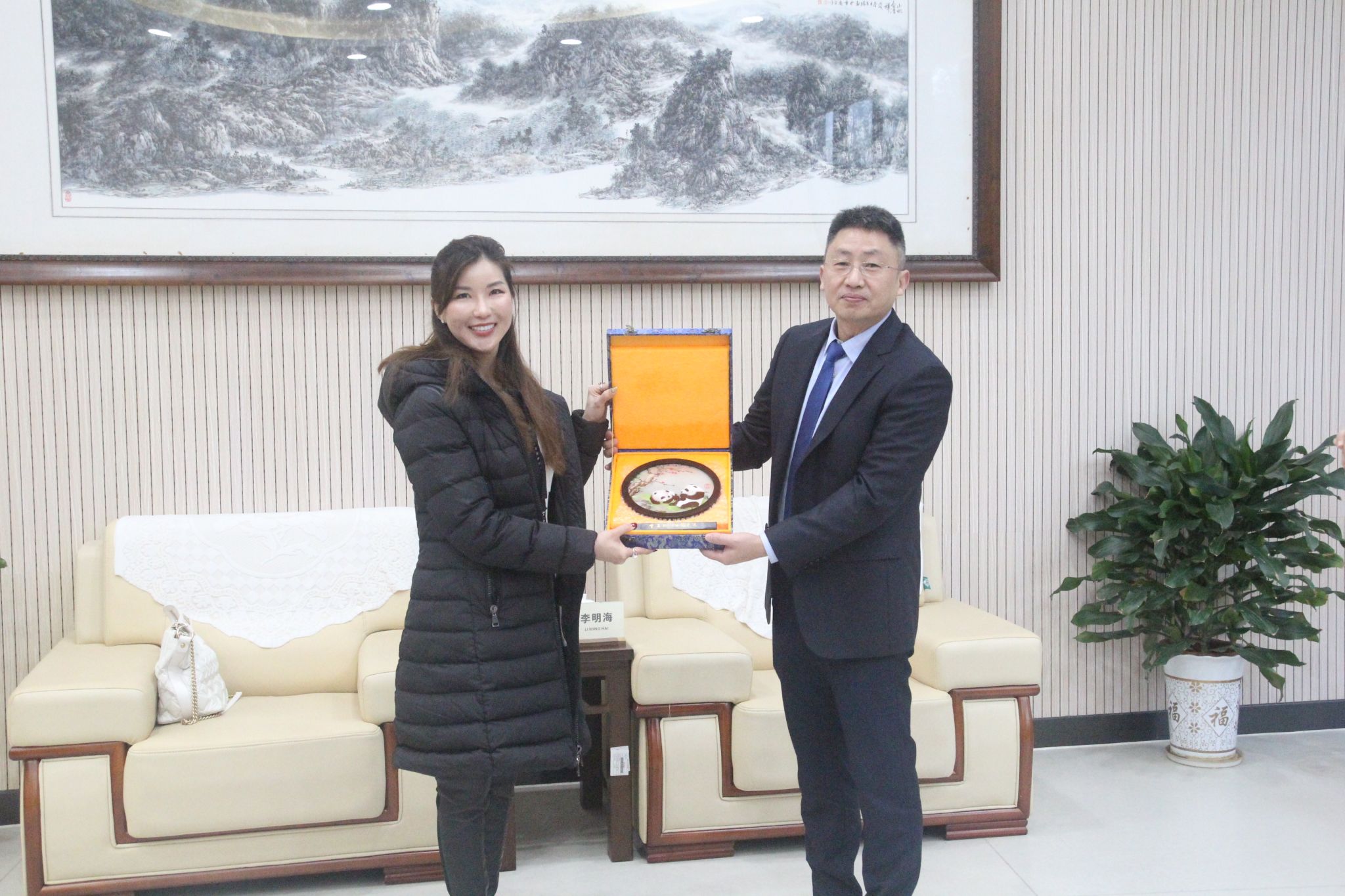 李明海校长和尼缇玛·茵咏副校长代表两校互赠了礼物。尼缇玛·茵咏副校长正式邀请李明海校长到巴吞他尼大学访问,并能够担任学校的教授,对巴吞他尼大学的学生进行指导。