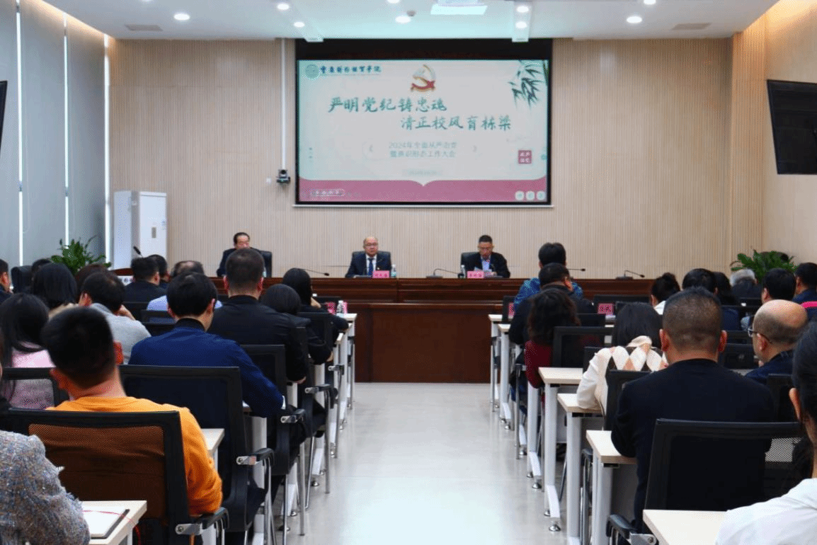 4月2日,“严明党纪铸忠魂,清正校风育栋梁”2024年全面从严治党暨意识形态工作大会在9106会议室召开。党委书记何大海参加会议并讲话,在家校领导、驻校理事、校长助理、副处级及以上干部和各党总支纪检委员参加会议。党委副书记、校长李明海主持会议。