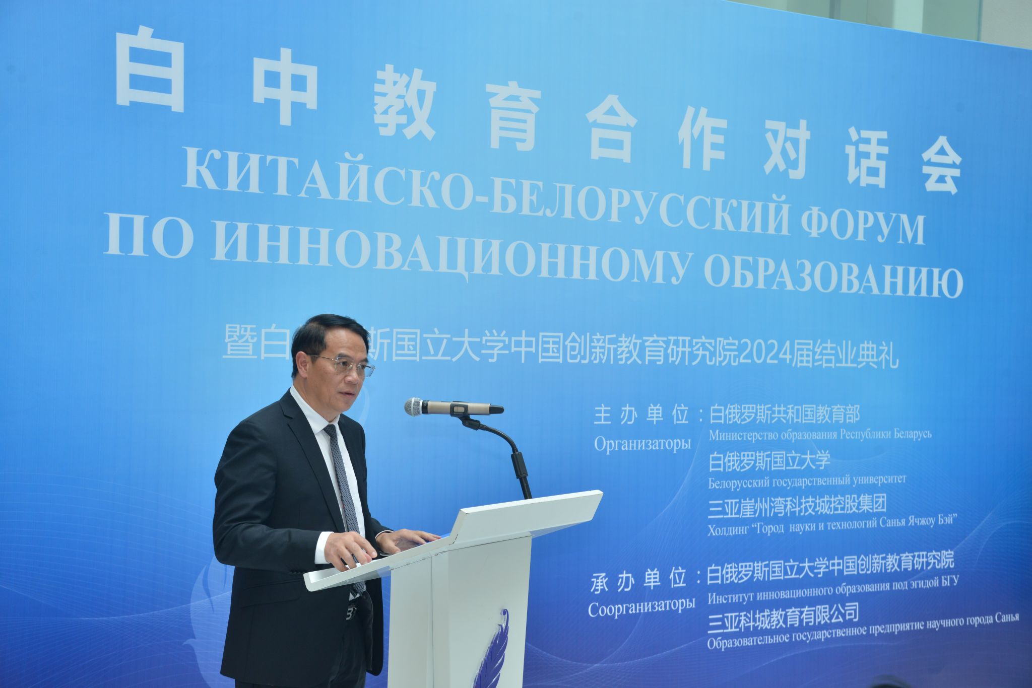 此次会议由白俄罗斯共和国教育部、白俄罗斯国立大学和三亚崖州湾科技城控股集团主办,旨在加强中国和白俄罗斯在教育文化方面合作的探讨,进一步推动两国教育资源共享。国内浙江大学、河南大学、中国海洋大学、哈尔滨工程大学、西安建筑科技大学等高校、地方教育主管部门和企业等共计近30家单位代表出席。