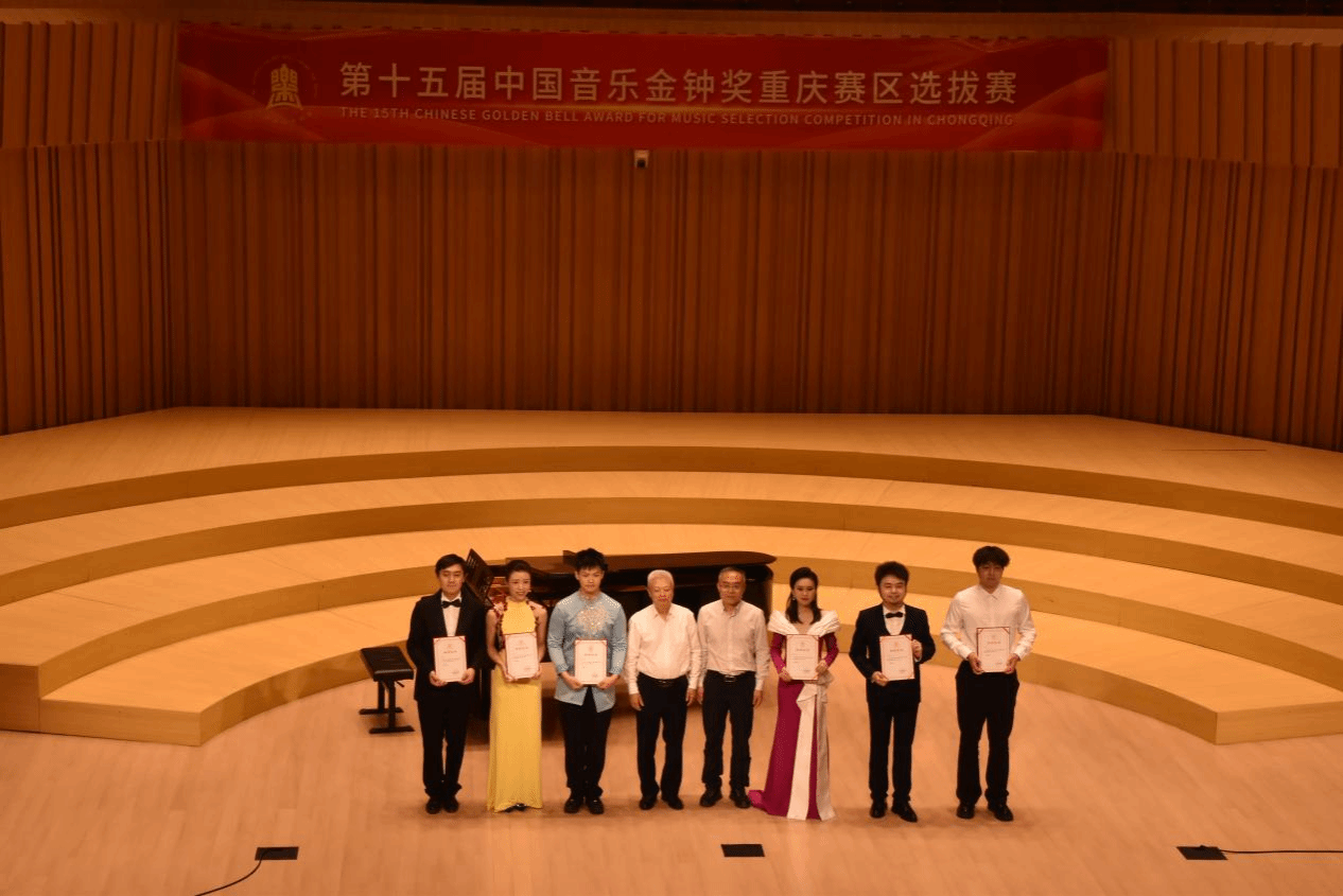 4月18日晚,第十五届中国音乐金钟奖比赛重庆市选拔赛颁奖晚会在学校B校区玉兰艺术中心一楼华彩音乐厅举办。本次比赛由重庆市文学艺术界联合会指导,重庆市音乐家协会主办,我校音乐舞蹈学院、重庆市音乐家协会钢琴专业委员会、重庆市音乐家协会古筝专业委员会、重庆市音乐家协会管乐专业委员会、重庆市音乐家协会声乐专业委员会共同承办。重庆市文联副主席、重庆市音协主席刘光宇,重庆市音乐家协会驻会副主席、秘书长姜明,学校校长、党委副书记孙泽平教授,副校长李辉教授,副校长、音乐舞蹈学院院长王婕教授等多名领导出席活动。颁奖仪式中,校长孙泽平与重庆市文联党组成员张泰春为一等奖获得者颁奖;副校长李辉与重庆市音协主席刘光宇、重庆文化艺术职业学院党委书记梁跃为二等奖获得者颁奖;副校长王婕与重庆市音协驻会副主席姜明等六位领导为三等奖获得者颁奖;音乐舞蹈学院党总支书记温赞扬与其余四所高校音乐学院院长为优秀奖及最佳钢琴伴奏奖获得者颁奖。