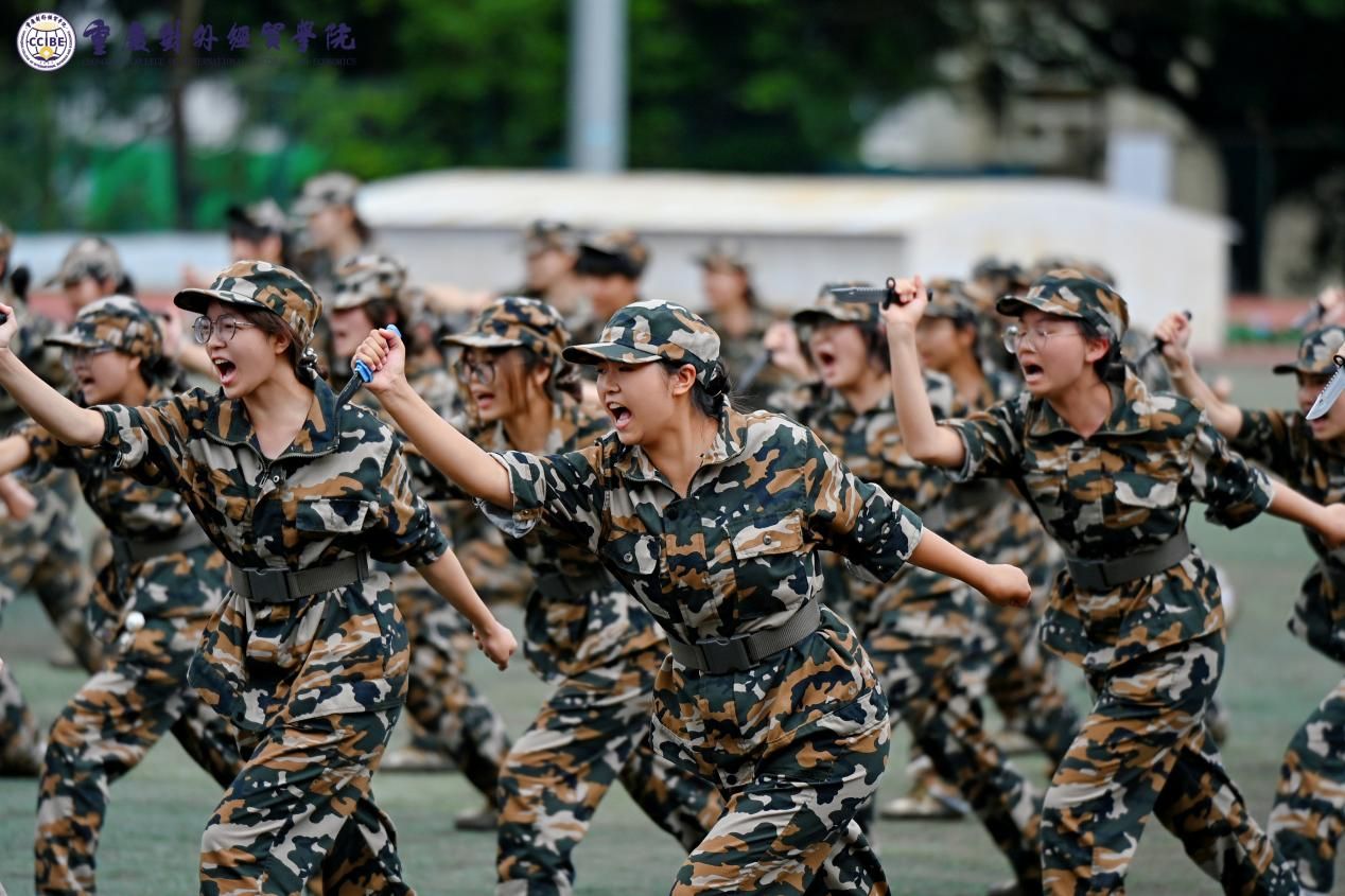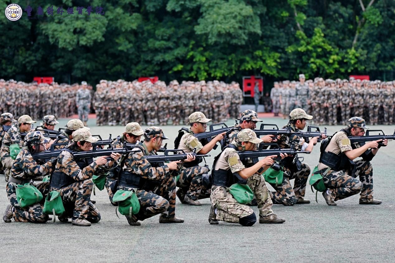 在军训成果展示环节,2025 级军训学员们以饱满的热情、整齐的步伐、嘹亮的口号依次展示队列会操、刺杀操、擒敌拳、匕首操、应急棍、防暴队形、战术行动等训练内容。队列会操中,学员们步伐铿锵、动作标准,尽显严谨纪律;刺杀操演练时,“杀” 声震天,展现无畏勇气;擒敌拳、匕首操、应急棍表演里,招式刚劲有力,凸显扎实技能;防暴队形与战术行动展示,模拟实战场景,体现协同作战能力。整个汇报环节历时约 45 分钟,充分展现了 2025 级学生在军训期间的丰硕成果与良好精神风貌,赢得了现场领导与观众的阵阵掌声。