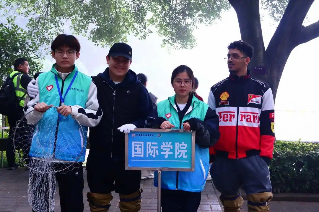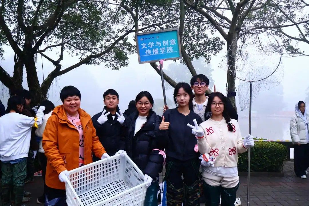 一声令下,同学们迅速投身“战斗”。荷花池边热闹异常,团队协作围堵,有的单兵作战展开追击,灵活地穿梭于池边浅水区。时而屏息凝神瞄准目标,时而欢呼雀跃收获战果,现场的掌声、笑声、欢呼声此起彼伏,充分彰显了青年学子的蓬勃朝气。