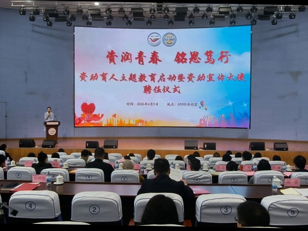 为全面贯彻党的教育方针,落实立德树人根本任务,厚植学生爱国、爱党、爱校、爱家、爱己的“五爱”品格,推动资助工作与思想引领、价值塑造深度融合,4月9日下午,学校“资润青春·铭恩笃行”资助育人主题教育启动暨资助宣传大使聘任活动在A校区9101学术报告厅隆重举行。副校长李川出席活动并做总结讲话。本次活动由学生处主办、管理学院承办。学生处处长伍祥伦、副处长周昊、汪嫔嫔,各二级学院党总支书记(副书记)、学工办主任、资助专员、辅导员及受助学生代表共同参与。