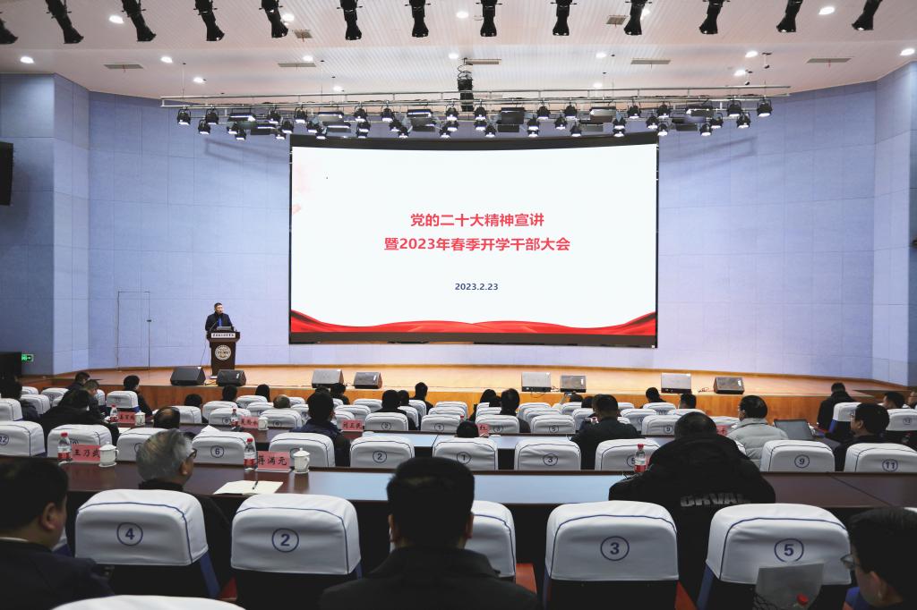 2023年2月23日上午,党的二十大精神宣讲暨2023年春季开学干部大会在学校9101学术报告厅举行,学校校长李明海教授以“贯彻落实党的二十大精神,务实推进应用型大学的高质量发展和中国式教育现代化”为题作专题报告。报告摘要传达了党的二十大精神要点,简要总结2022年学校事业发展情况,并对2023年的工作要点进行部署。会议由常务副校长王乃武主持。