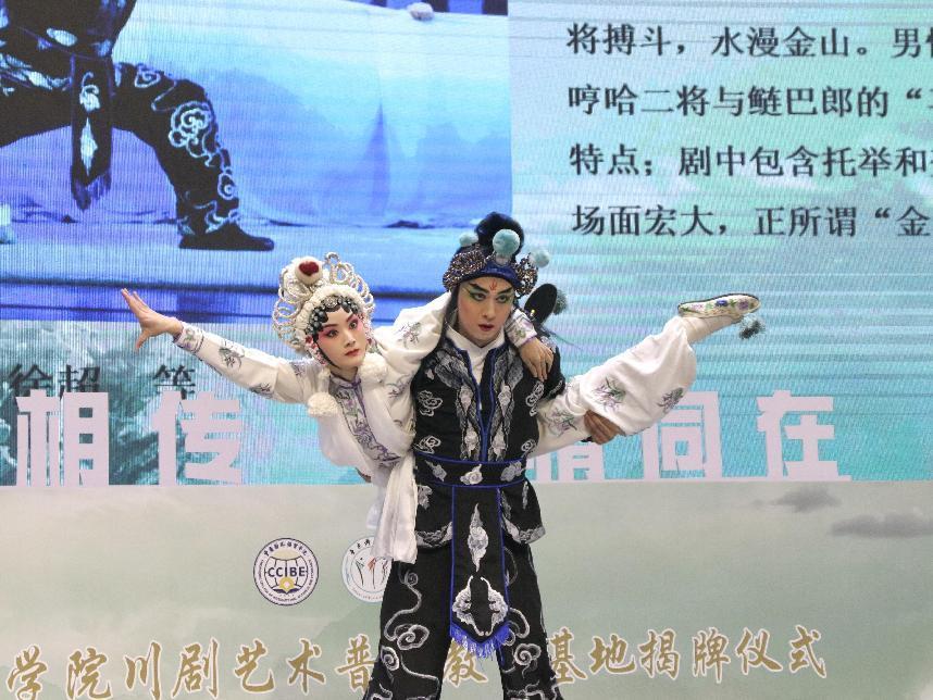 春暖花开,草长莺飞,川剧艺术与高校完美“邂逅”,共同诠释“薪火相传,根情同在”。2023年3月21日,川剧艺术普及教育基地揭牌仪式在重庆对外经贸学院隆重举行,掀起深入学习贯彻党的二十大精神、送戏进校园系列活动的新高潮,收获了十分热烈的反响。重庆市人大常委会副主任沈金强,合川区委常委、区委书记郑立伟,市文旅委一级巡视员江卫宁,区人大常委会主任程卫,市文联主席、重庆市川剧院院长沈铁梅,区政府副区长袁晓钦,区政协副主席莫智红莅临活动现场,区政府、区委宣传部、区文旅委、区文联、区社科联、区文化馆、区音协、区剧协、市文旅协会相关负责人以及郭元新理事长等相关校领导、师生代表一行出席揭牌仪式。仪式由重庆对外经贸学院音乐舞蹈学院副院长费毓珺主持。