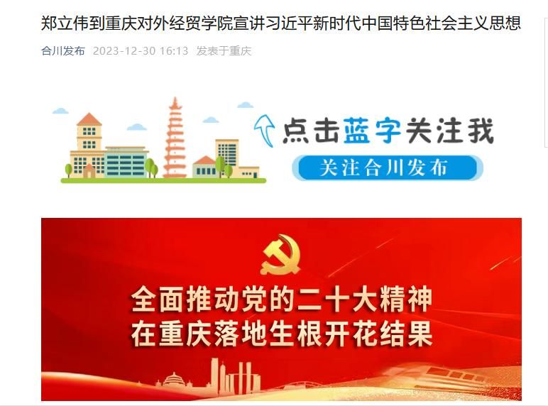 【合川发布】报道郑立伟到重庆对外经贸学院宣讲习近平新时代中国特色社会主义思想