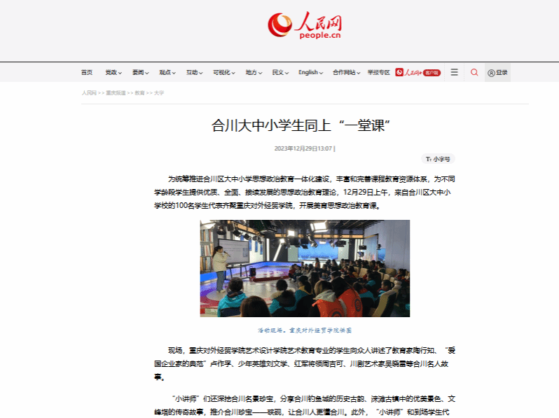 上一条:【合川发布】报道郑立伟到重庆对外经贸学院宣讲习近平新时代中国特色社会主义思想
