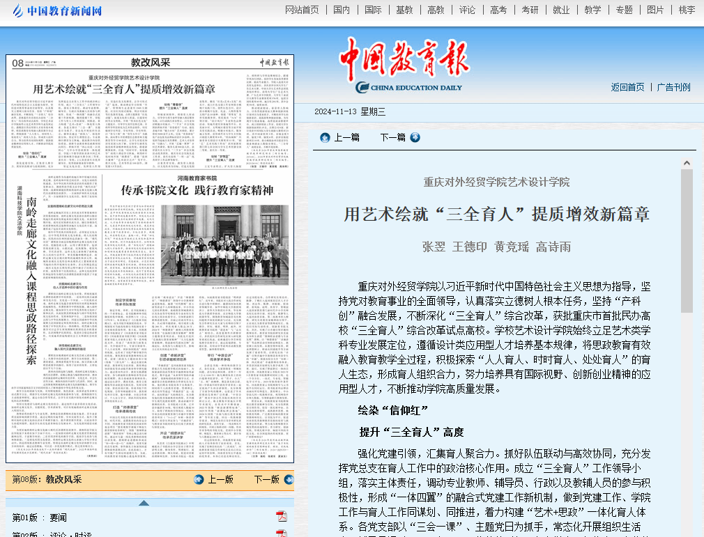 《中国教育报》报道重庆对外经贸学院用艺术绘就“三全育人”提质增效新篇章