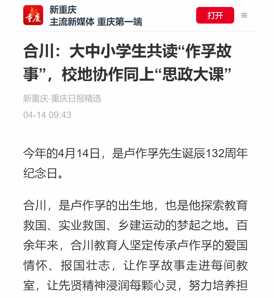 合川:大中小学生共读“作孚故事”,校地协作同上“思政大课”