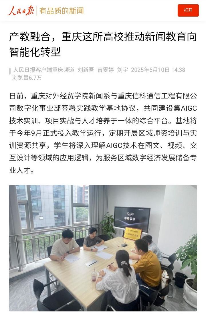 《人民日报》报道产教融合,重庆这所高校推动新闻教育向智能化转型