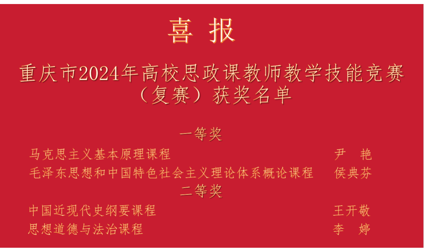 【本网讯】祝贺我院教师在“重庆市2024年高校思政课教师教学技能竞赛”中再创佳绩!