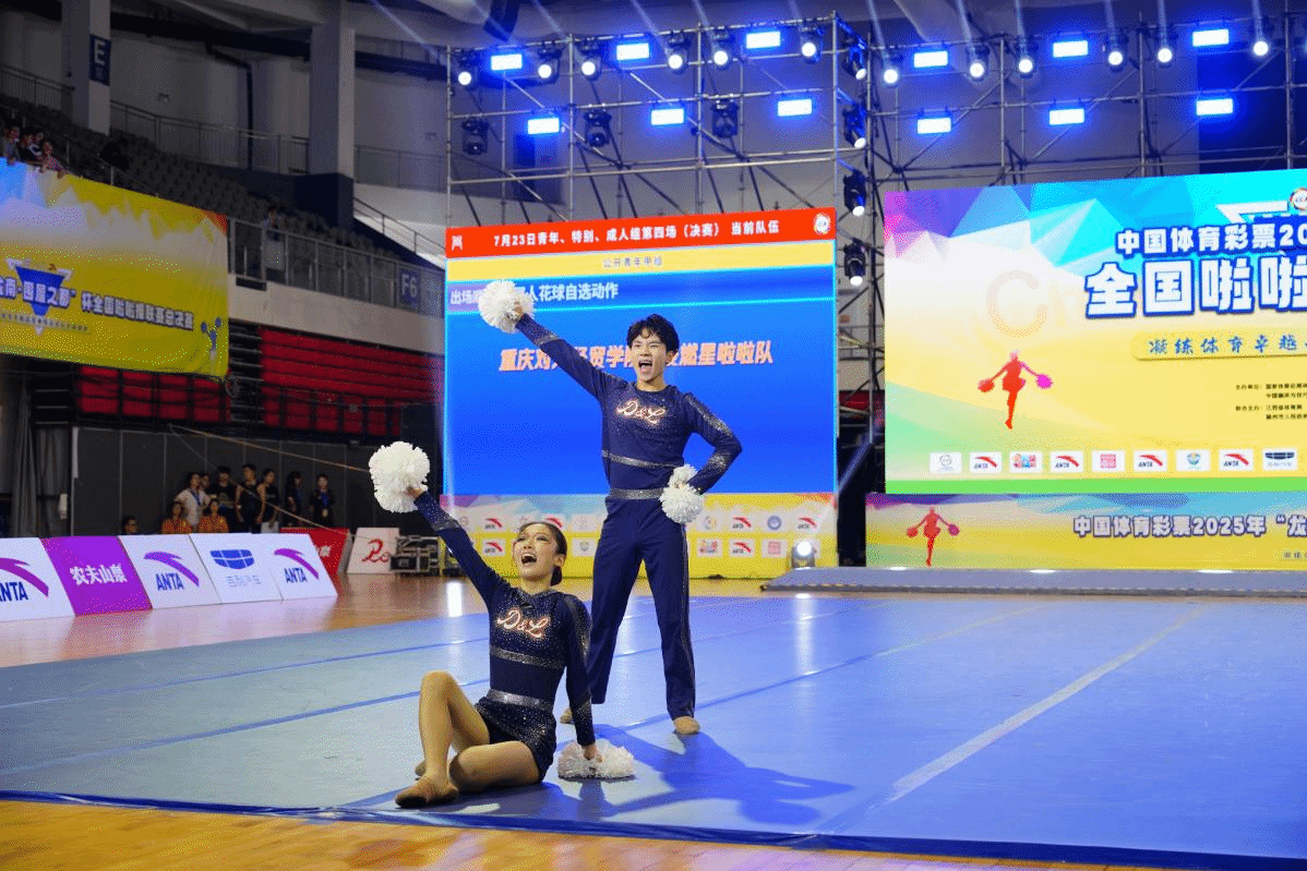 【本网讯】由国家体育总局体操中心主办,江西省赣州市承办的2025年全国啦啦操总决赛于2025年7月21-24日在江西省赣州市龙南体育馆举行。为了提高我校在全国高校中的影响力,更好地提高整个队伍的竞技水平,锻炼学生的舞台经验。在校体委的领导下,校体委决定将校啦啦操队伍中的双人花球推向全国,由体育与健康学院副院长贾勇为领队,体育与健康学院教师邓茗丹为教练,由重庆市大学生健美操比赛双人花球冠军代表学校参加本次比赛。本次比赛分为公开青年甲组(体育院系及艺术院系组)、公开青年乙组(普通院校)、公开青年丙组(高职高专)三个组别。