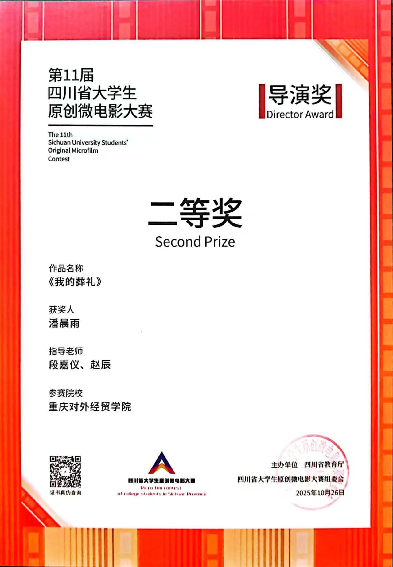 《我的葬礼》导演潘晨雨获二等奖(指导教师:段嘉仪、赵辰)