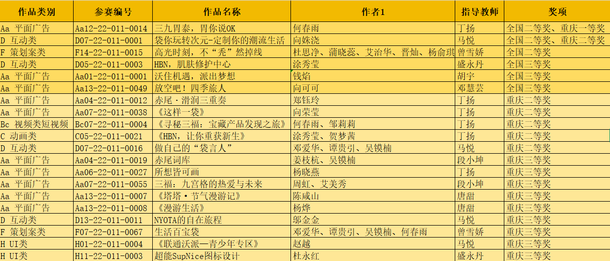 12月6日,第17届全国大学生广告艺术大赛成果展示盛典在北京全国政协礼堂举行,我校艺术设计学院6名师生代表受邀赴京参会领奖。本届赛事中,视觉传达设计专业学子斩获全国二等奖3项、三等奖3项、优秀奖11项,重庆赛区一等奖1项、二等奖6项、三等奖9项,创历史最佳成绩,学校获评“优秀院校奖”。