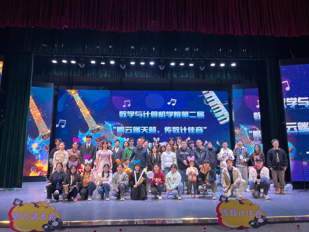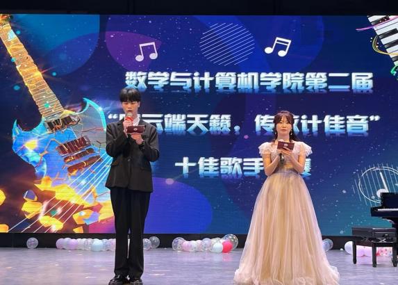 为丰富校园文化生活,提升学生艺术修养,展现当代青年的精神面貌,展示数学与计算机学院学子的独特风采。3月19日晚上,由星期五音乐工作室冠名赞助的“唱云端天籁,传数计佳音”数学与计算机学院第二届十佳歌手大赛于在小剧场举行。出席本次活动的嘉宾有学院党总支书记赵鹏、辅导员代表、专业教师代表、音乐舞蹈学院学生兼职团总支副书记毛程。