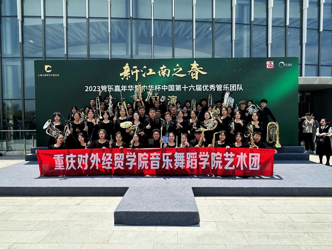5月3日,由中国交响乐发展基金会、中共上海市奉贤区委宣传部主办的2023“新江南之春”管乐嘉年华暨“中华杯”中国第十六届优秀管乐团队展演在上海九棵树未来艺术中心落下帷幕,经组委会层层选拔,重庆对外经贸学院音乐舞蹈学院交响管乐团作为重庆唯一受邀展演乐团在此届展演中脱颖而出,荣获“优秀乐团”称号。学院院长王婕带队参加此次展演活动。