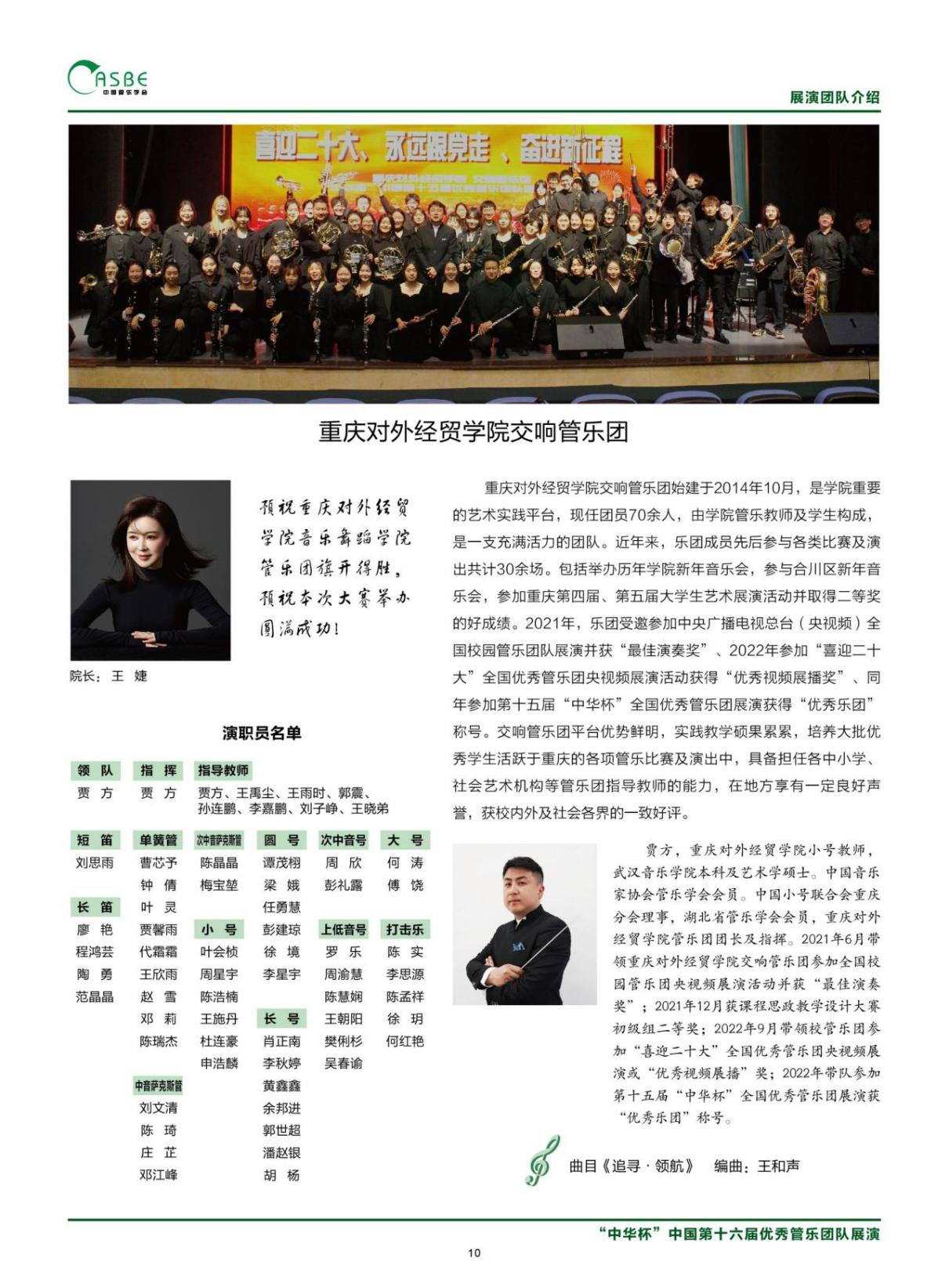 “中华杯”据悉,全国优秀管乐团队展演活动是我国目前规格最高、规模最大、影响最广的管乐盛会。活动从2007年开始举办,至今已成功举办了十六届。作为全国最高品质的管乐展演平台,聚天下管乐英豪、汇天下管乐创造,吸引了来自全国各地区、各组别共计140支管乐团队参加。
