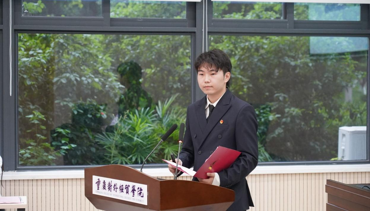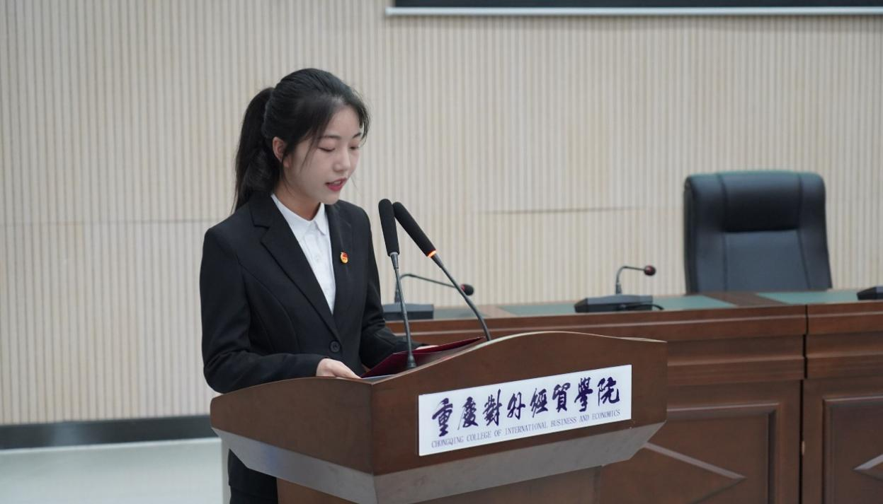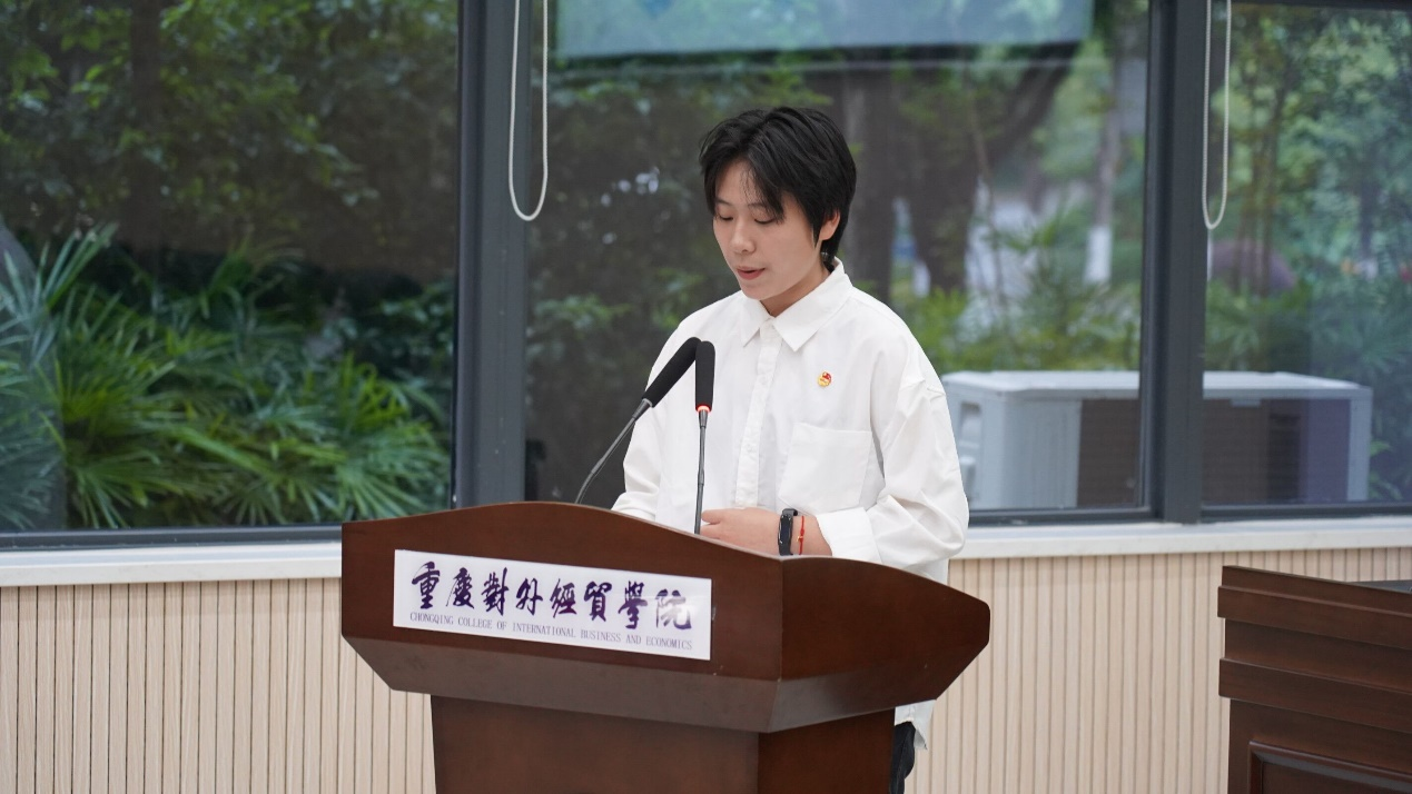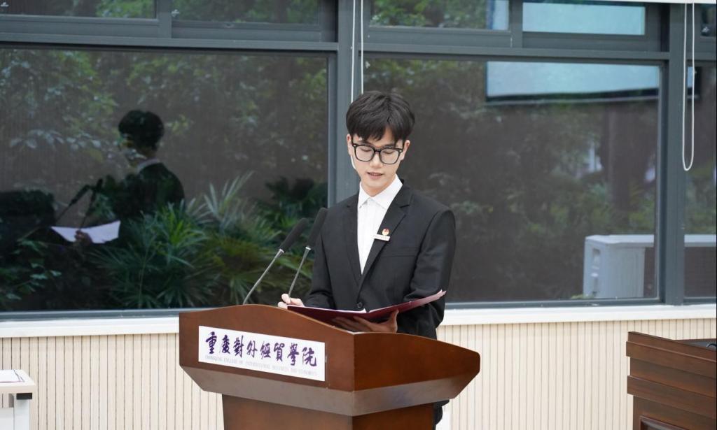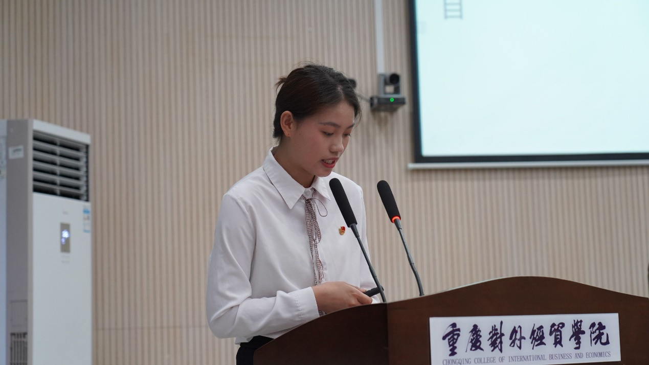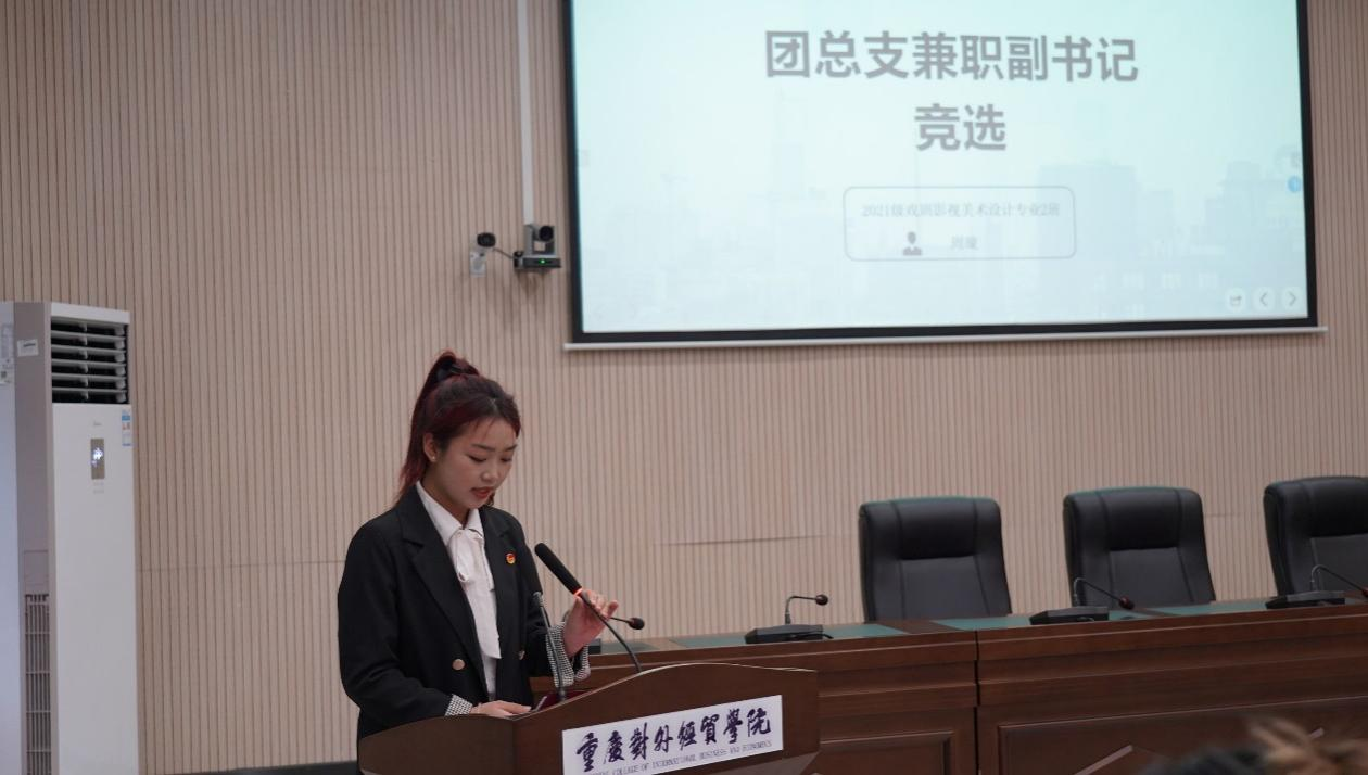 大会第一项议程,参会人员全体奏唱中国共产主义青年团团歌。校团委副书记冯斯迪宣读团委批复意见,大会宣读并通过《重庆对外经贸学院影视融媒体学院2023年学生兼职团总支副书记选举办法》《监票人、计票人名单》、候选人名单。
