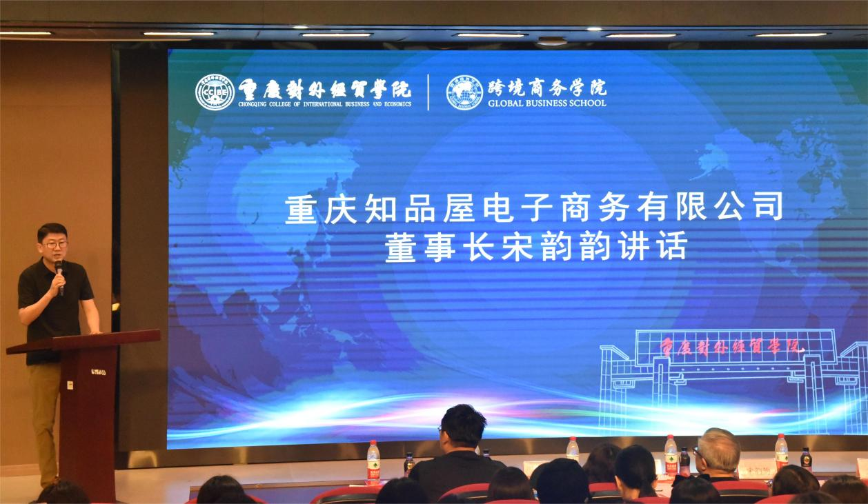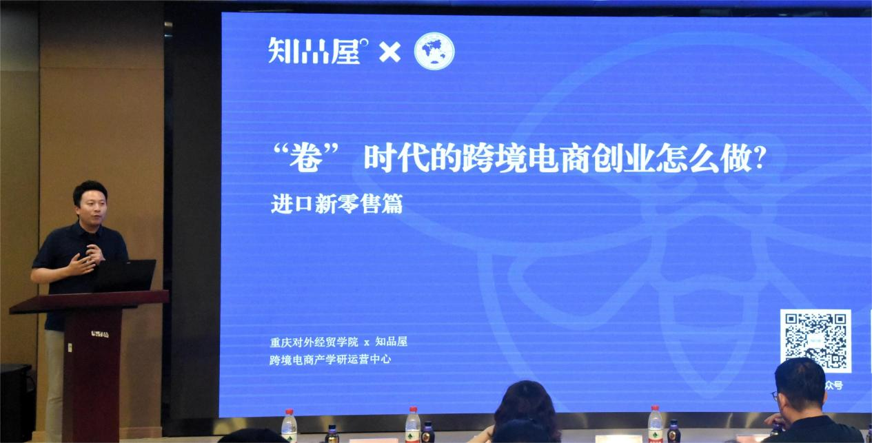 签约授牌仪式后,CEO刘勇登先生介绍了知品屋&重庆对外经贸学院跨境电商产学研运营中心,并向同学们讲解了“‘卷’ 时代的跨境电商创业”等内容,并以知识问答的形式和现场同学互动,为同学们送了一波福利。