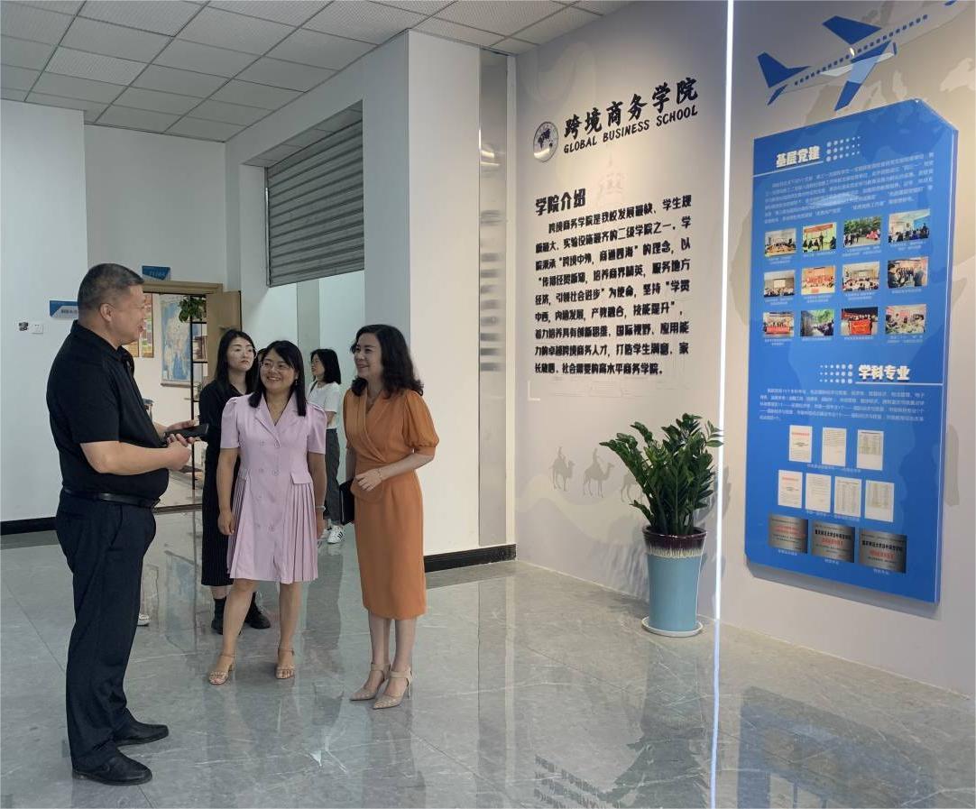 为共同探索数字经济专业建设的新路径,共谋数字人才的新发展,全面提高人才培养质量,2023年6月6日上午,重庆移通学院数字经济与信息管理学院院长潘显兵、副院长任瑞娟、院办公室主任廖阳及数字经济教研室骨干教师等一行来跨境商务学院交流。跨境商务学院院长赵逖、副院长李艳、数字经济教研室主任甘元玲及专业教师参加了此次交流会。双方就数字经济专业建设相关方面进行了深入探讨与交流。