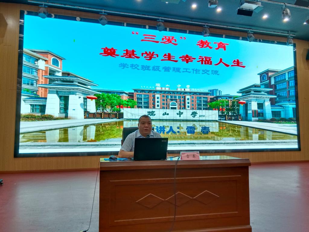 然后,雷春副校长为大家开展了以《“三爱”教育奠基学生幸福人生》为主题的学校班级管理工作交流讲座,就“热爱—教育韧度:当一辈子老师一定要当班主任”;“会爱—教育温度:用非常‘5+1’的师爱感动学生”;“被爱—教育高度:在爱与被爱之间收获幸福和快乐”三个方面展开讲述,并提到了当教师可拥有当今世间十大“奢侈品”—童心、上进心、好身体、好环境、好睡眠、好生活、好爱人、好心情、好胸襟以及正能量去感染学生,带动学生。最后,同学们参观了瑞山中学天文科技馆,在领略天文之美以及宇宙浩瀚的同时深入感受瑞山中学学生“玩天文、学天文、探究天文”的“第二课堂”。