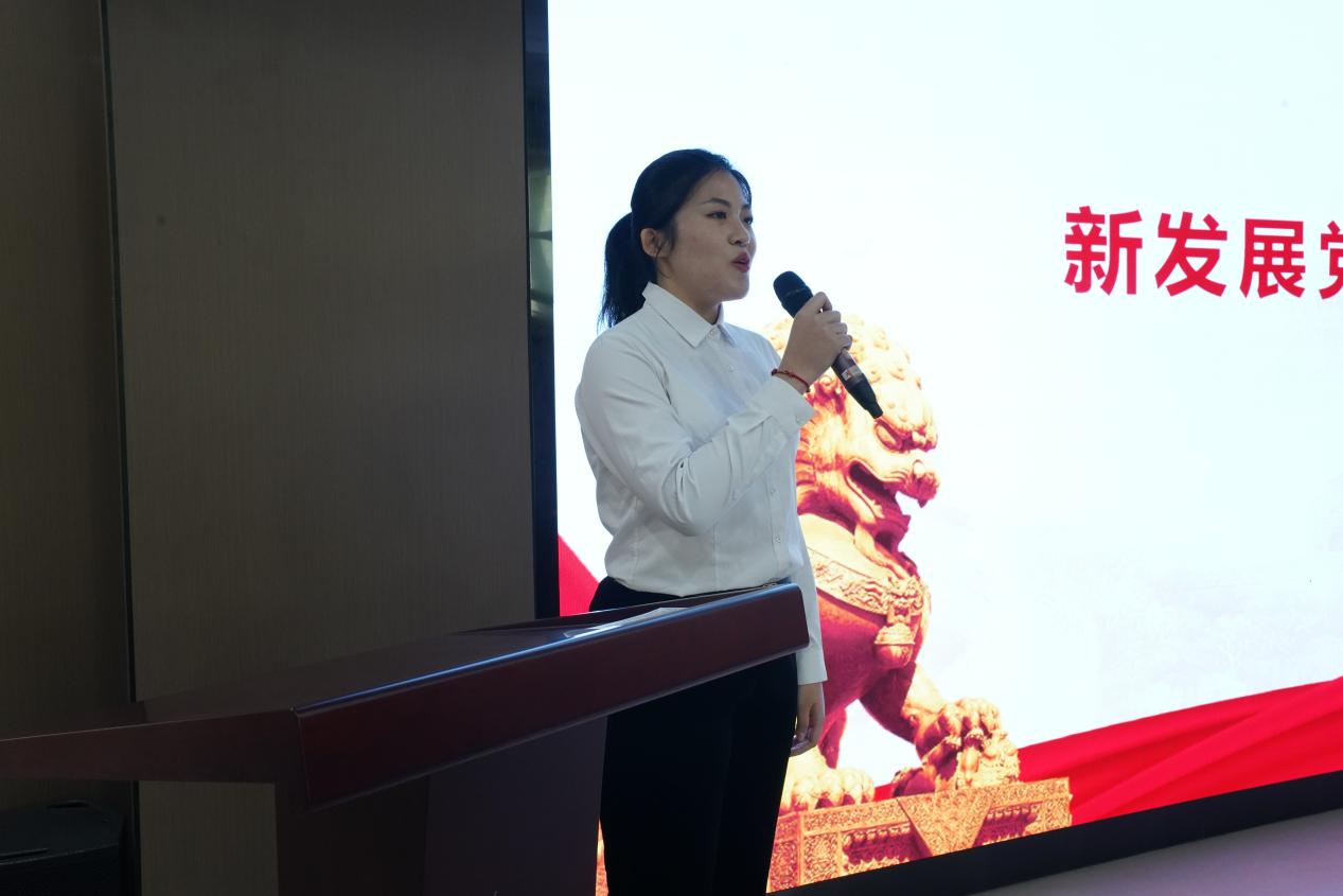 新发展党员代表班靖蕾同志作发言,她表示作为一名年轻党员要扎实学习党的理论知识,提高党性修养,勇于担负起责任。