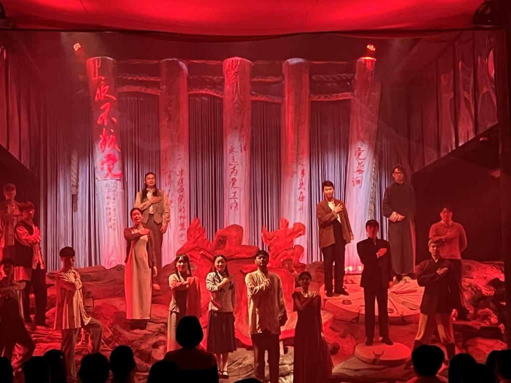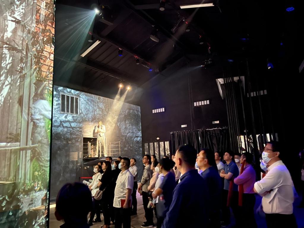 (附:《红岩红》围绕“永不叛党”主题,以红岩文化为内涵,再现了英烈们在狱中的精神意志与信仰的力量。该剧还充分运用3D Mapping技术、全息投影、真人演艺等融合虚拟与现实的艺术形式,营造了身临其境的场景,具有“全天候、行进式、互动性、观赏性、多样性”等特点,使得观众心系剧中人物的命运与情感,沉浸其中、深深感染。)