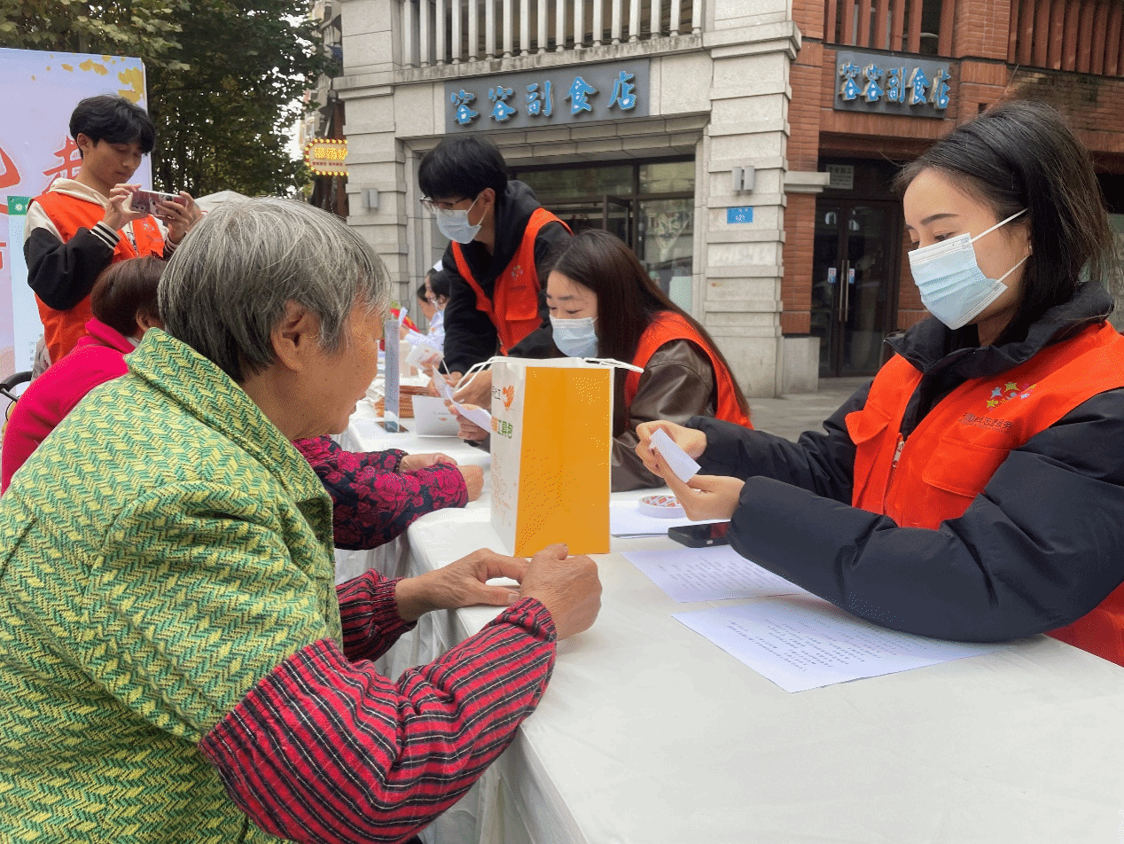 重庆市第九人民医院记忆门诊、全科门诊的医生团队为老人提供测血压、测血糖、贴耳穴等服务,并为他们进行现场诊疗、详细讲解健康相关知识,同时根据每位患者的身体状况进行健康指导,给出专业的用药及治疗指导意见。