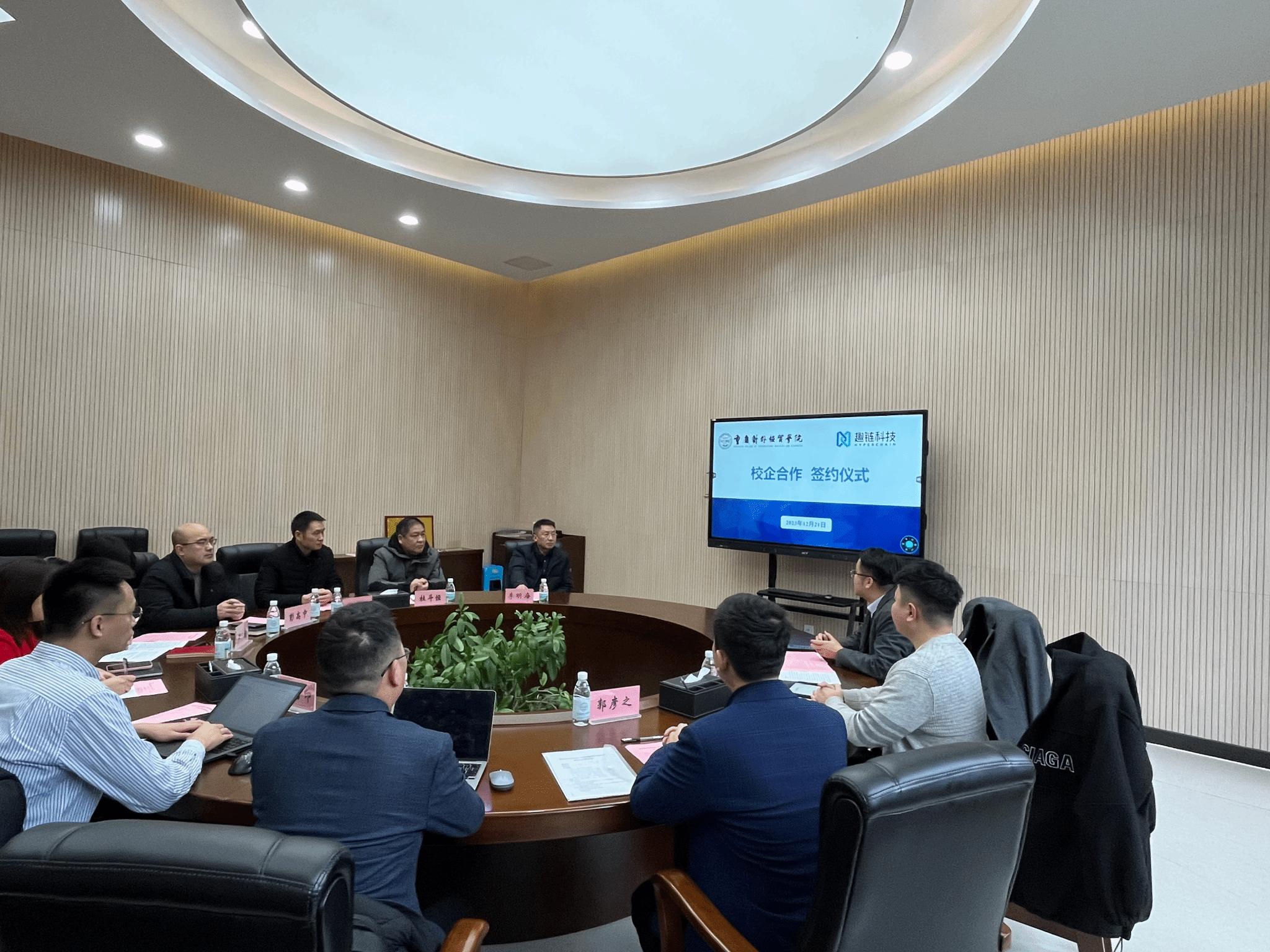 为深化产教融合、校企合作,推动学校专业建设及人才培养模式改革,促进区块链工程专业教育的整体发展和提高。2023年12月21日下午,重庆对外经贸学院与杭州趣链科技有限公司在合川A校区9104会议室举行了校企合作签约仪式。重庆对外经贸学院校长李明海、副校长杜斗恒、数学与计算机学院院长陈东升、教务处副处长彭高中、数学与计算机学院党总支书记尹翔、数学与计算机学院副院长马秀芬以及杭州趣链科技有限公司创始人兼高级副总裁匡立中、重庆趣链科技副总经理唐瑞琮、教育事业部总监郭彦之等参加签约仪式。