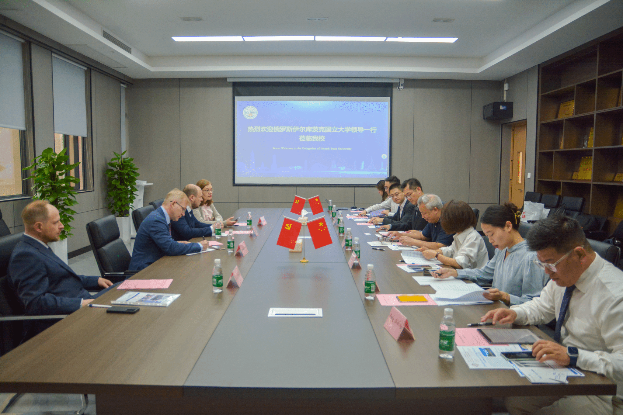 为进一步加强国际合作交流,拓展跨文化传播人才和跨境商贸人才培养路径,5月7日,俄罗斯伊尔库茨克国立大学副校长Grigorichev Konstantin、语言学、外语和媒体传播研究学院副院长Julia Arskaya、贝加尔国际商学院副院长Alexander A. Tveritinov、汉语系系主任Evgeny Kremnyov一行4人受外语外贸学院邀请到学校访问交流。