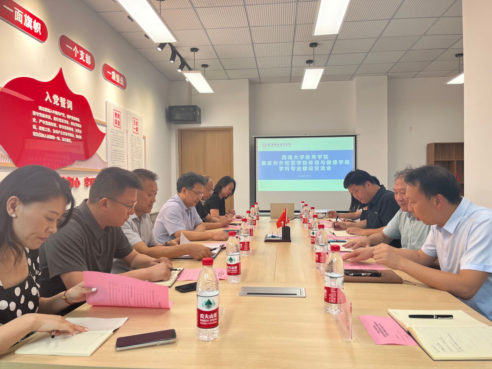 在交流会上,西南大学体育学院一行了解了学院运动康复专业的办学情况,运动康复系主任周曾国就该专业学生培养方向、专业核心课程以及就业渠道进行了探讨。