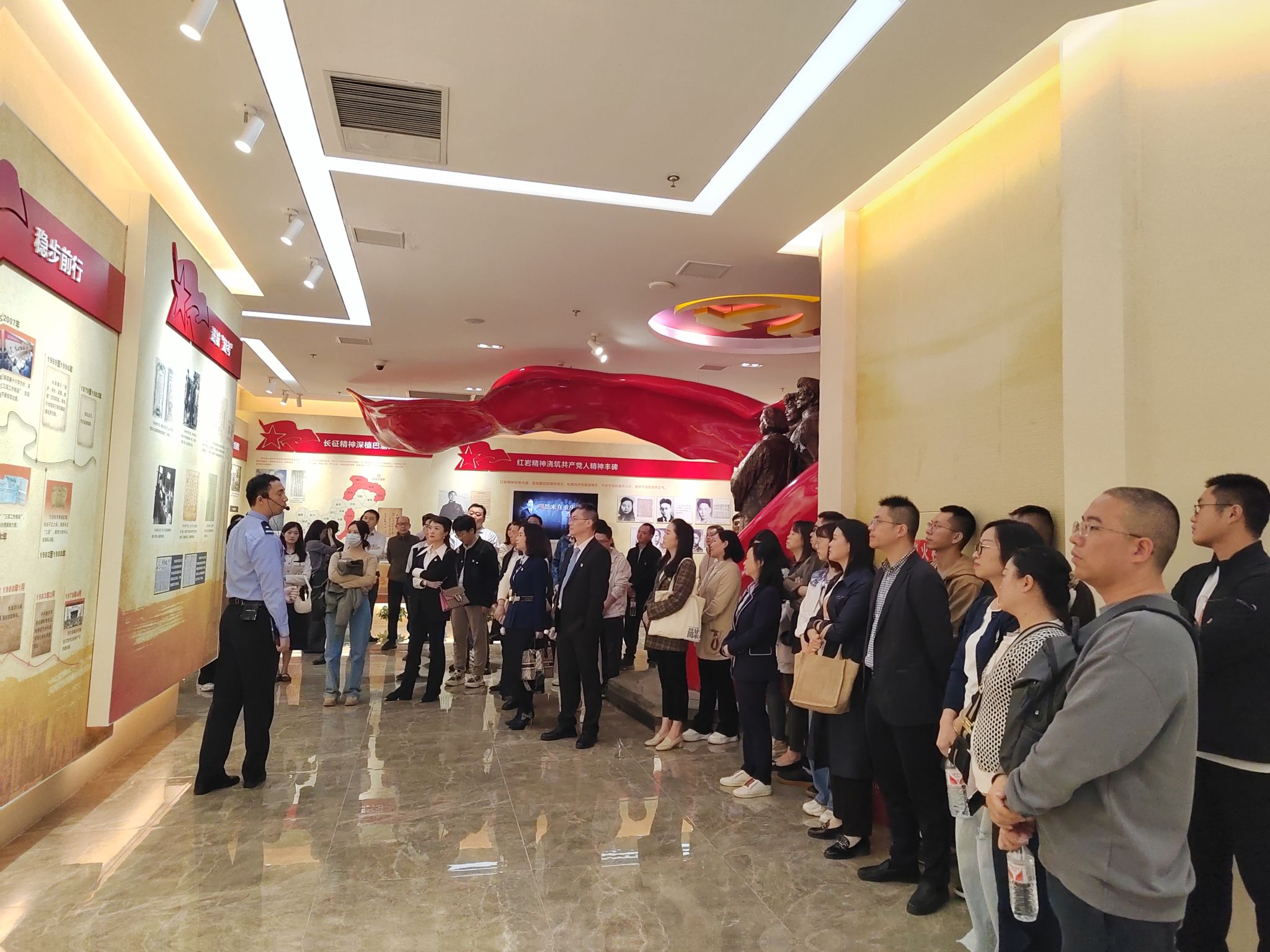 活动伊始,全体党员、干部认真聆听了习近平总书记关于全面从严治党的重要告诫,面对党旗庄严宣誓,重温入党誓词,回顾入党初心。随后,在讲解员的引导下,大家依次参观了“中国共产党党风廉政建设历程”“中国监察制度及机构演变”“中国共产党在重庆的党风廉政建设历程”“党的十八大以来查处的典型违纪违法案例”等多个展厅。通过展板、图片、视频等形式,全面了解了中国共产党反腐倡廉建设历程以及党风廉政建设和反腐败斗争取得的成果。最后,大家参观了新时代廉洁文化作品展览。