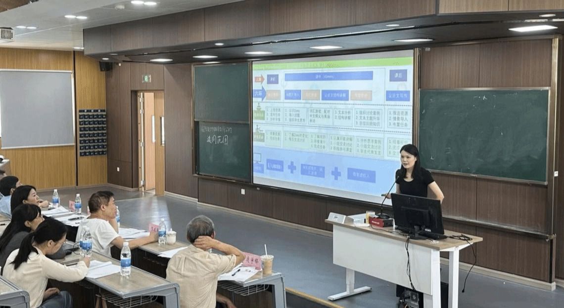 在多轮的磨课中,老师们严格遵循“集体备课—个人试讲—小组反馈—多轮优化”的闭环流程,在反复演练与深度互评中精练设计、锤炼语言、夯实逻辑。同时,课程思政得到深度融合,比如《英语阅读》《商务英语写作》课程中,老师们巧妙引入“大语言模型与人类发展”等前沿议题,探索推动教学目标从“语言训练”向“认知提升”与“价值塑造”跨越。最终,21个课程组均形成了兼具前瞻理念与技术融合的数字化教学创新方案,为学院教学改革提供了可复制、可推广的样板经验。