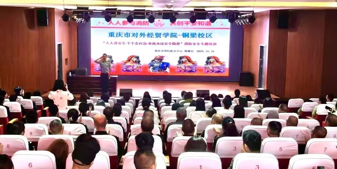 10月16日,铜梁校区精心组织“人人讲安全 个个会应急·查找身边安全隐患”消防安全专题培训。本次培训特邀重庆市利民防火中心韩教官主讲,校区全体教职工、物业公司及食堂、校内商铺负责人,学生代表等参训,实现校园安全关键岗位人员全覆盖。