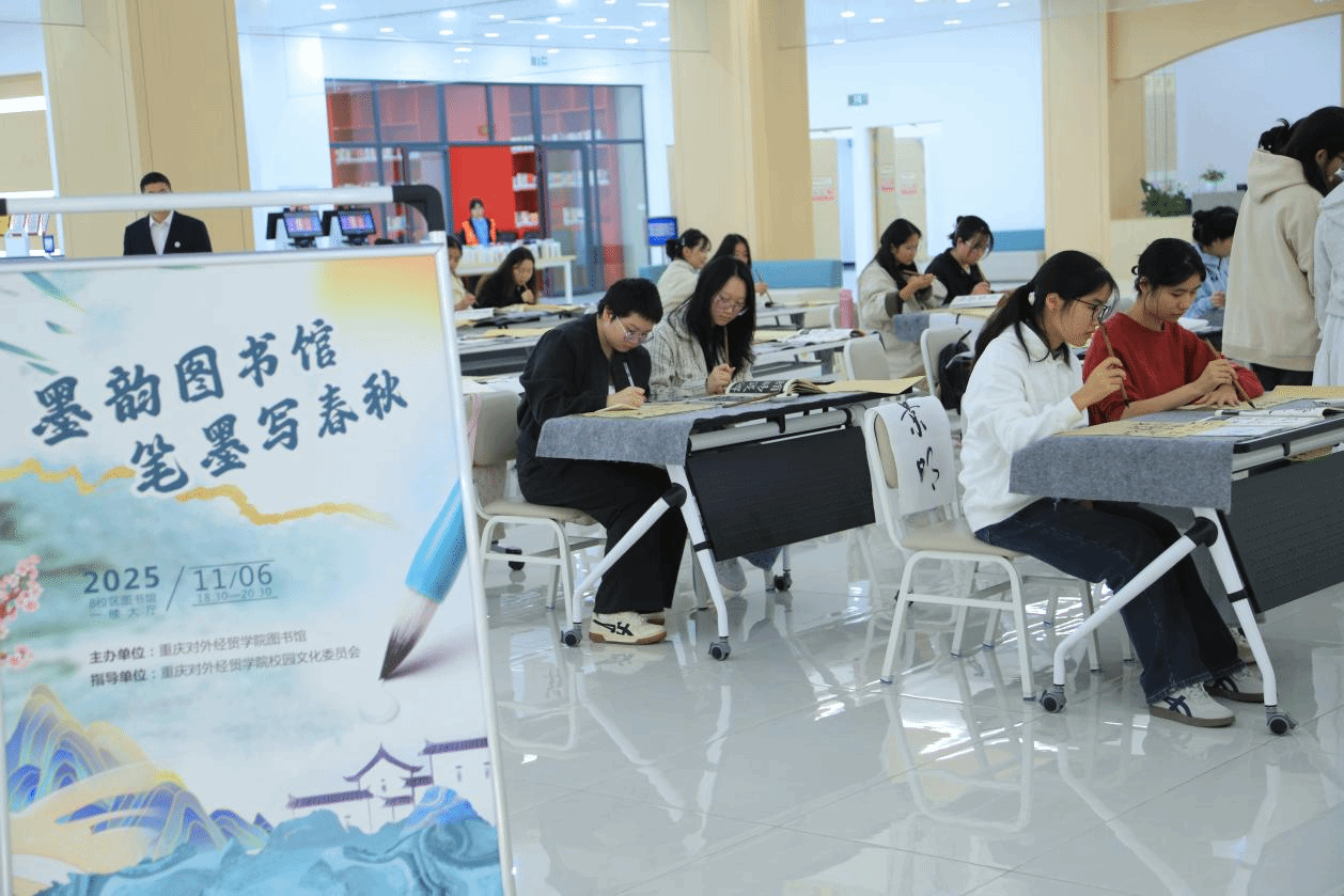 在“墨韵图书馆·笔墨写春秋”书法研习活动中,师生共同沉浸于笔墨世界,从执笔运笔到经典诗篇的摹写,体会书法艺术的结构之美与神韵之境。活动不仅提升了学生的审美素养,更强化了图书馆作为文化传承与创新平台的功能定位。