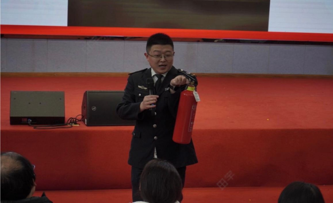 黎良灿讲师为A校区参训人员讲解灭火器使用要点