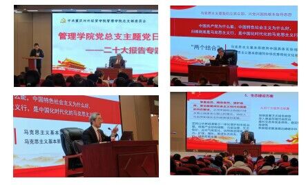 为深入学习党的二十大精神,全面贯彻习近平新时代中国特色社会主义思想,管理学院于2022年3月9日在合川B校区举办了“以中国式现代化全面推进中华民族伟大复兴——中国共产党第二十次全国代表大会解读” 为主题的讲座。讲座由中共重庆市委党校(重庆行政学院)三级教授,硕士生导师,MPA导师,小平干部学院特聘教授,重庆对外经贸学院教授崔如波教授担任主讲人。本次活动由周万春书记主持,管理学院教师代表,优秀学生党员,入党积极分子都参与了此次讲座。