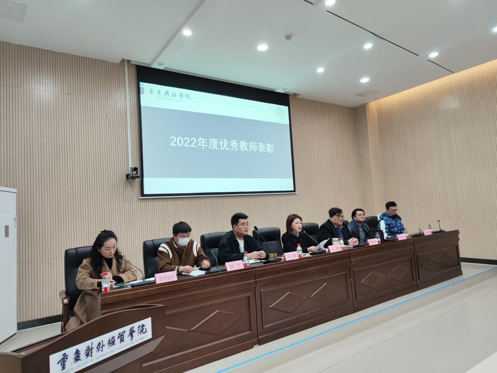 王婕院长宣读2022年度获得表彰的教学团队和优秀教师名单。学院领导为受表彰教师颁发证书和奖金。