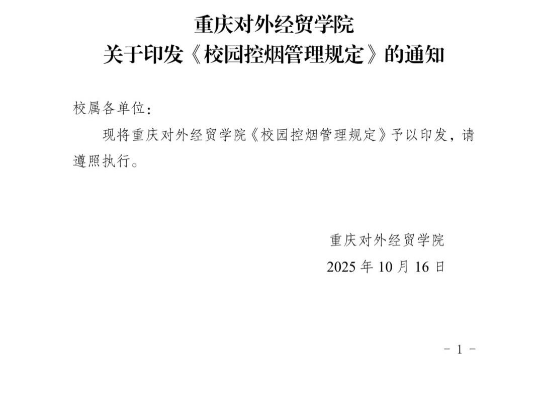 重庆对外经贸学院 关于印发《校园控烟管理规定》的通知