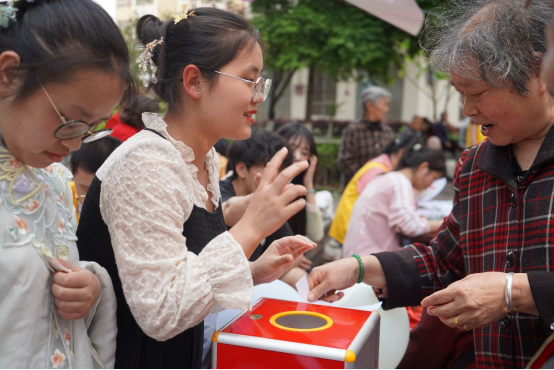 “知识问答”:志愿者们准备大量有关红色历史和反诈知识的问题,居民们积极参与知识解答,该活动不仅可以激发老一辈民众对光荣岁月的回忆,同时也能让居民们了解到更多的反诈骗知识。