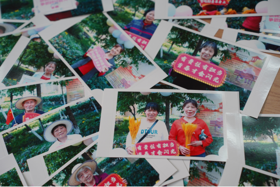 “最美记忆”:居民们在摊位上选择自己喜欢的配饰,摆出自己喜欢的姿势,志愿者用相机为社区居民留下最美的纪念。