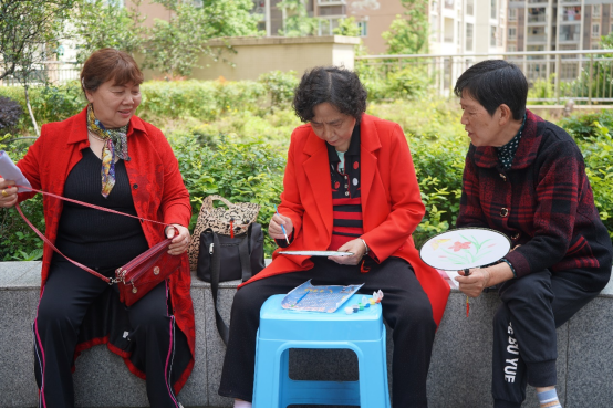 “绘出精彩”:居民们在团扇上游刃有余地一笔一画勾勒上精美的彩绘。炎炎夏日即将到来,希望今天制作的小小团扇,能为他们带来一缕清凉。