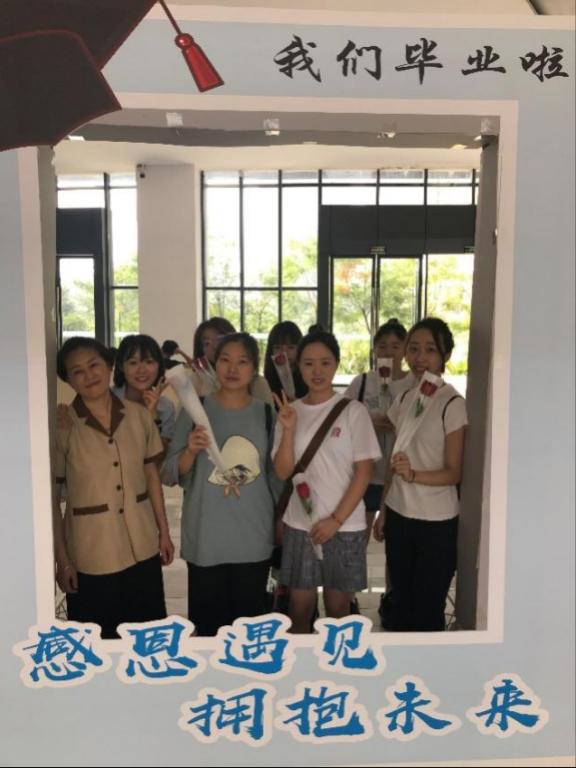 教学楼管理员“姐姐”用真诚的笑容祝福毕业生同学们,前程似锦,记得毕业后也要经常来教学楼“打卡”哟。